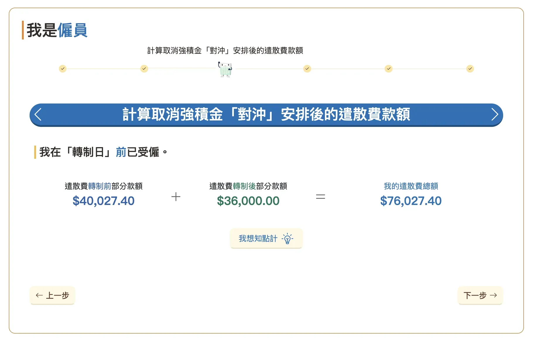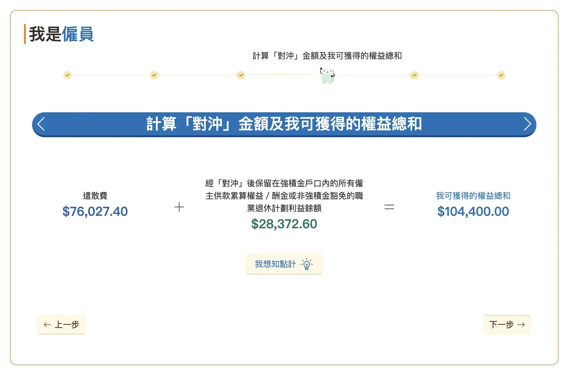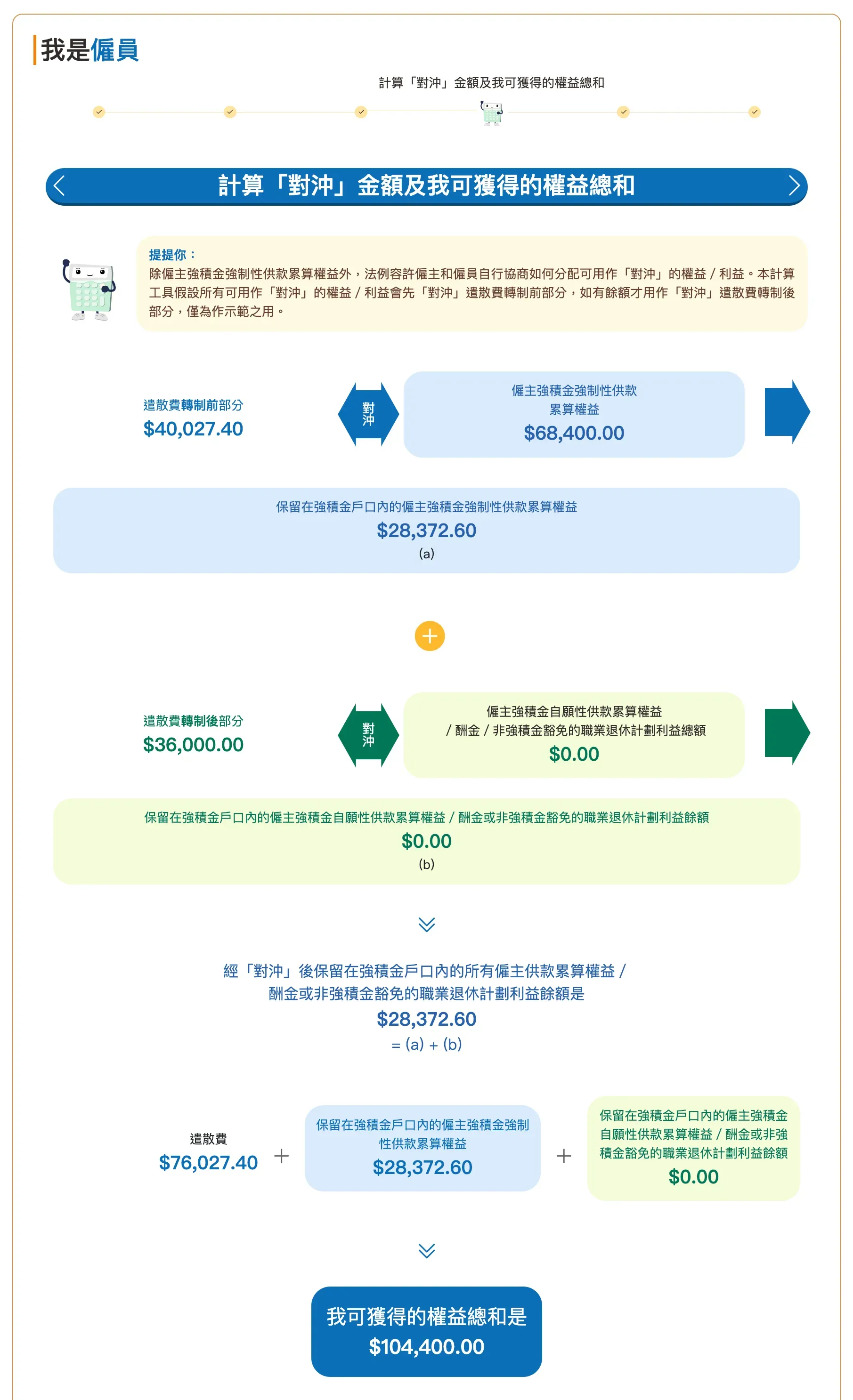 打工仔可能對強積金轉制前後的計算方法不清楚,其實唔使煩🤔 !勞工處特別設計了一個「計得掂」計算機 ,讓打工仔輕鬆計算取消強積金對沖安排生效後的「僱員」部分遣散費/長期服務金金額,好過自己計到頭都暈!