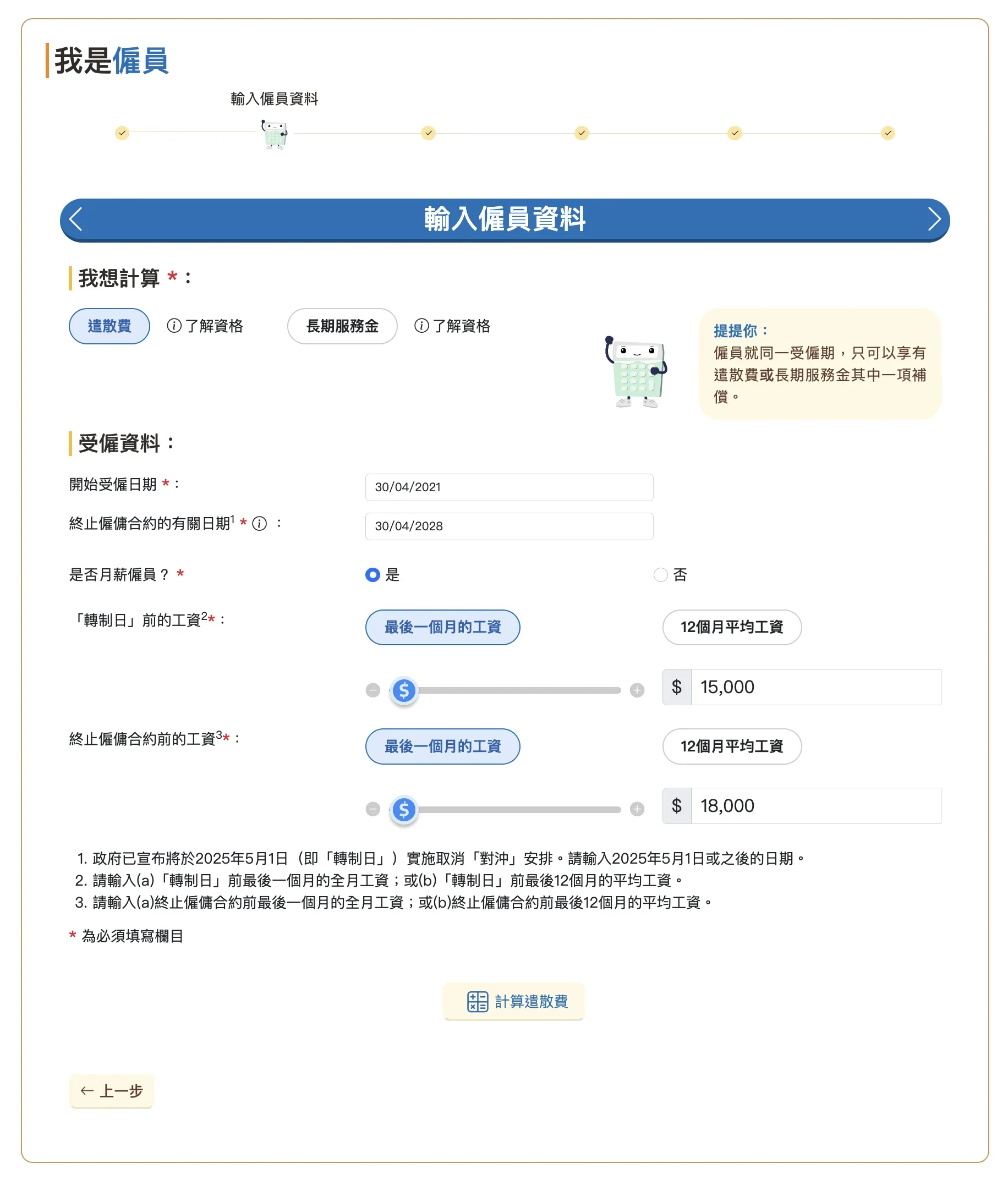 🧮 取消「對沖」計得掂:https://www.op.labour.gov.hk/tc/calculator.html