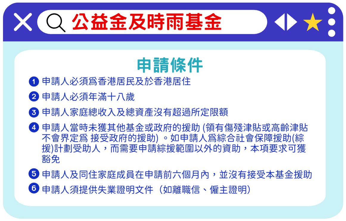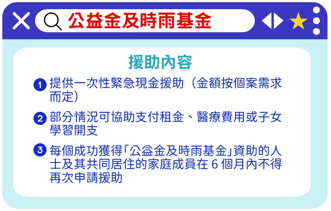 3️⃣每個成功獲得「公益金及時雨基金」資助的人士及其共同居住的家庭成員在六個月內不得再次申請援助。