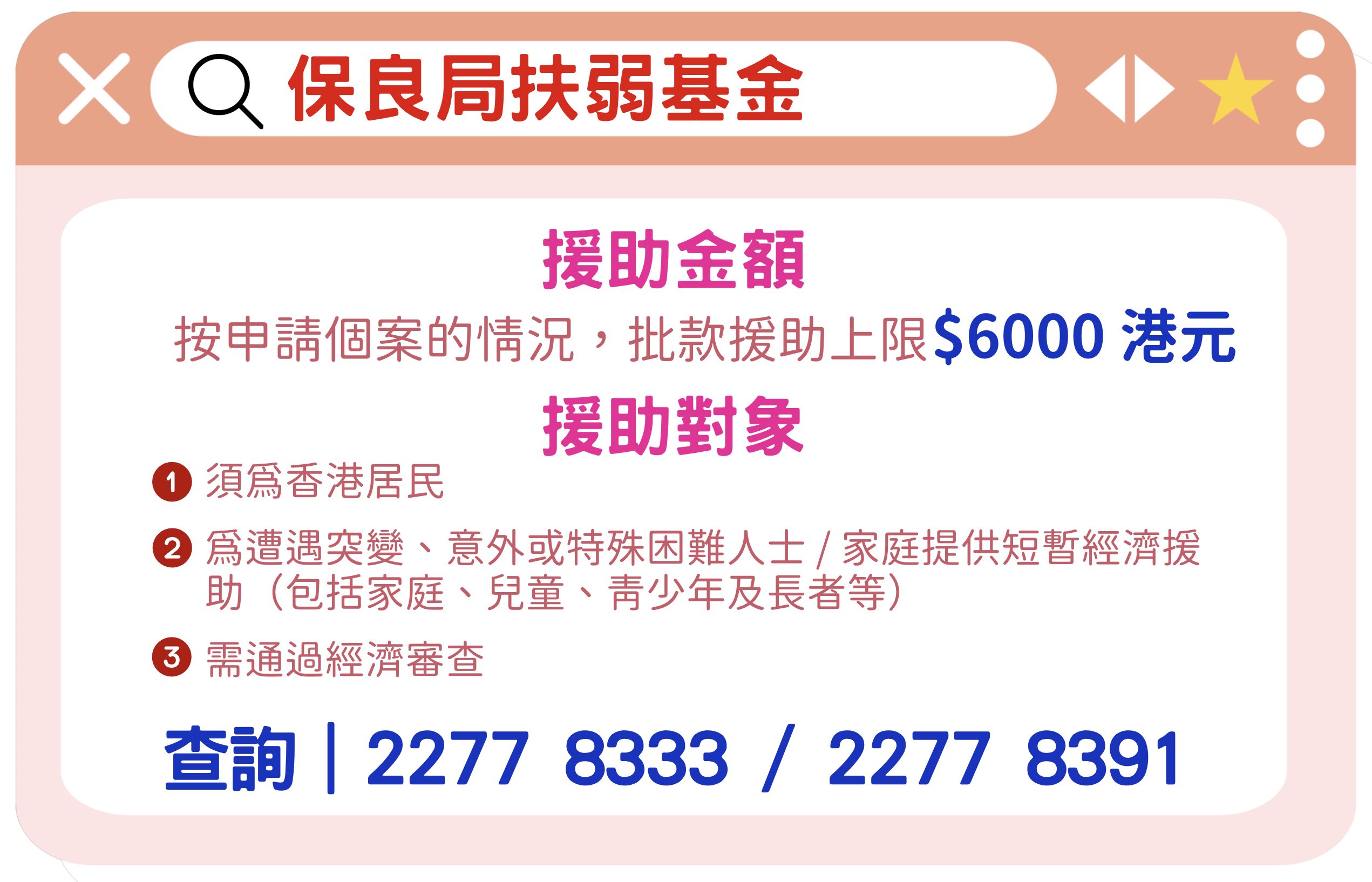 ⚠️ 備註:援助分為日常或家居需要/醫療需要/學業需要等5個範疇,每位申請人5年內可就各項援助範圍獲資助一次,部分範疇資助額略有不同)