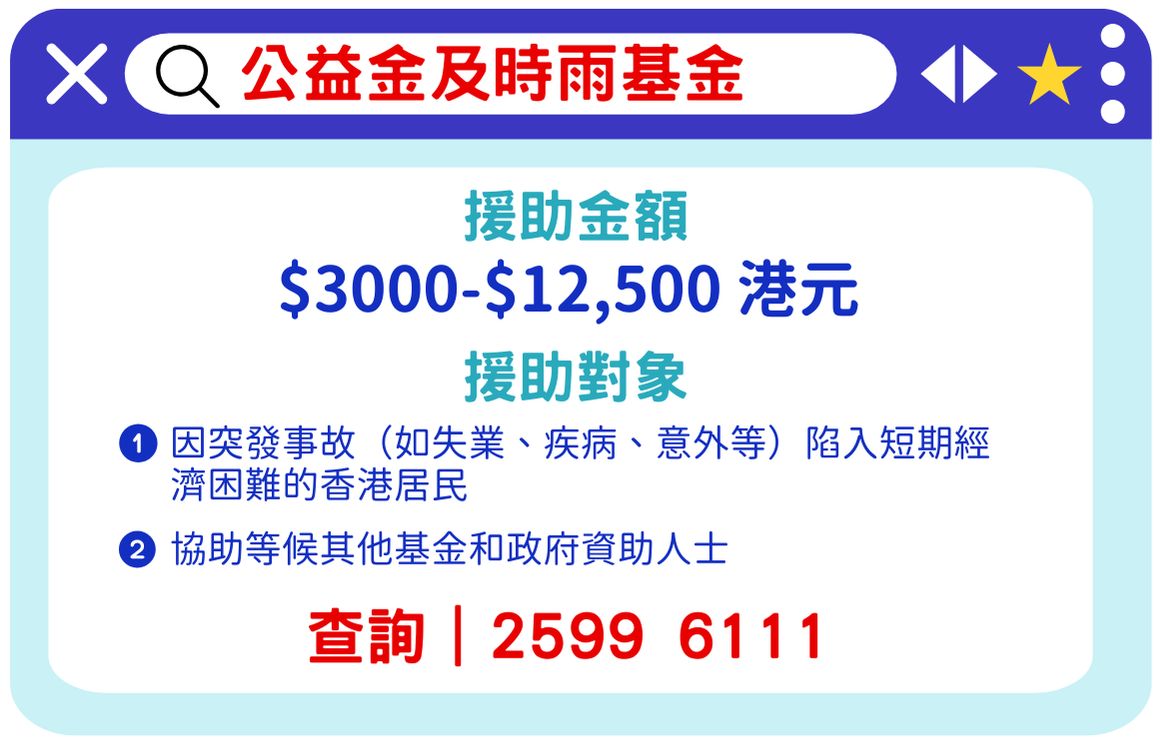 公益金及時雨基金查詢電話| 2599 6111(網址連結)