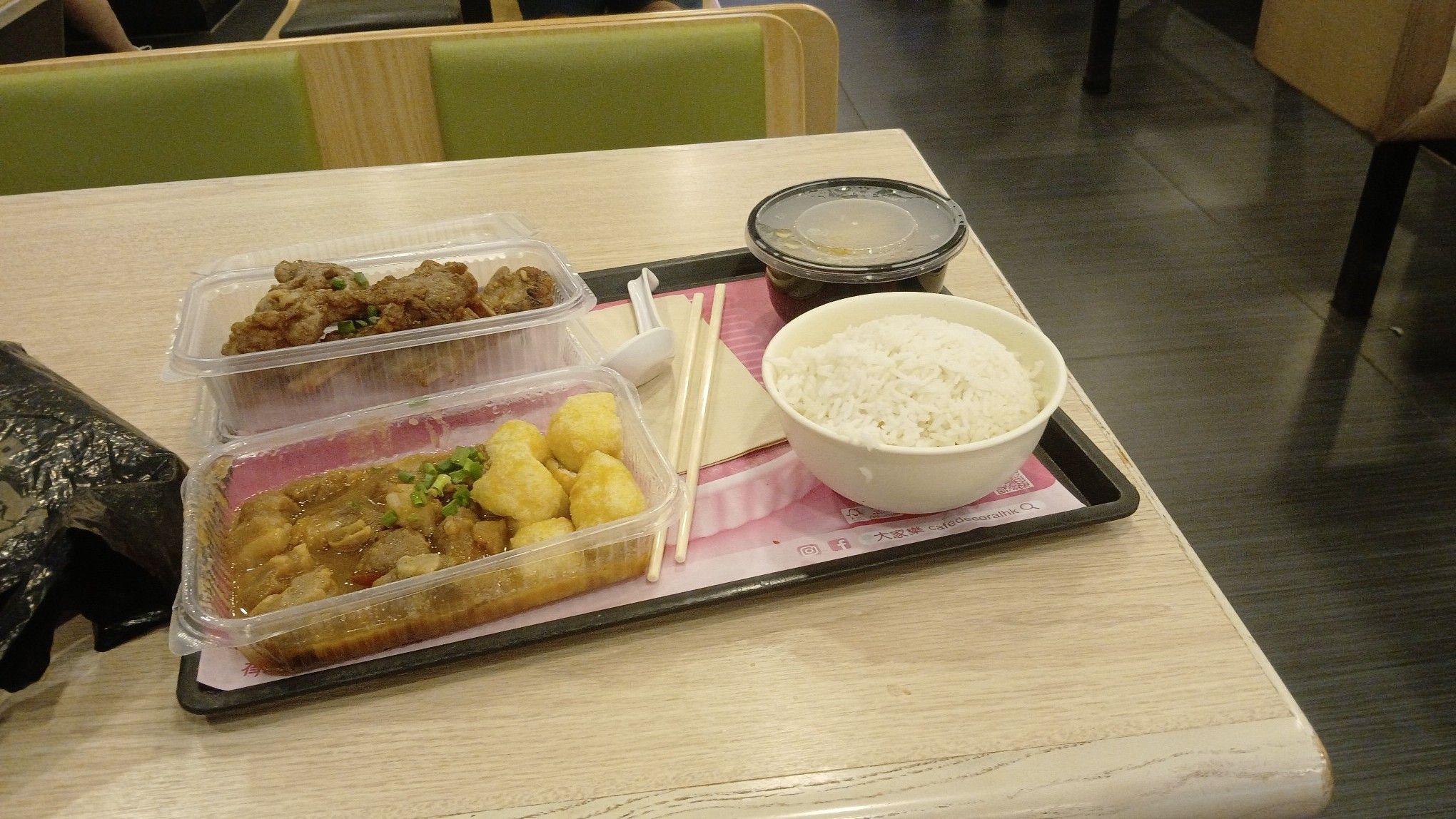 大家樂這個優惠,兩餸價錢為 $45,要飯則須加 $10(連糖水),講真以兩餸飯來講,價錢不算便宜,不過賣點是「一餸一碟」,以份量取勝,如果當為屋企加餸都有得諗嘅。