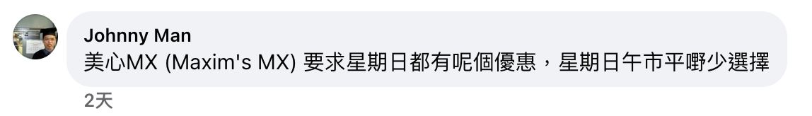 1️⃣ 全線美心MX(大會堂MX、大學站MX、西九高鐵站MX及機場中場MX分店除外)