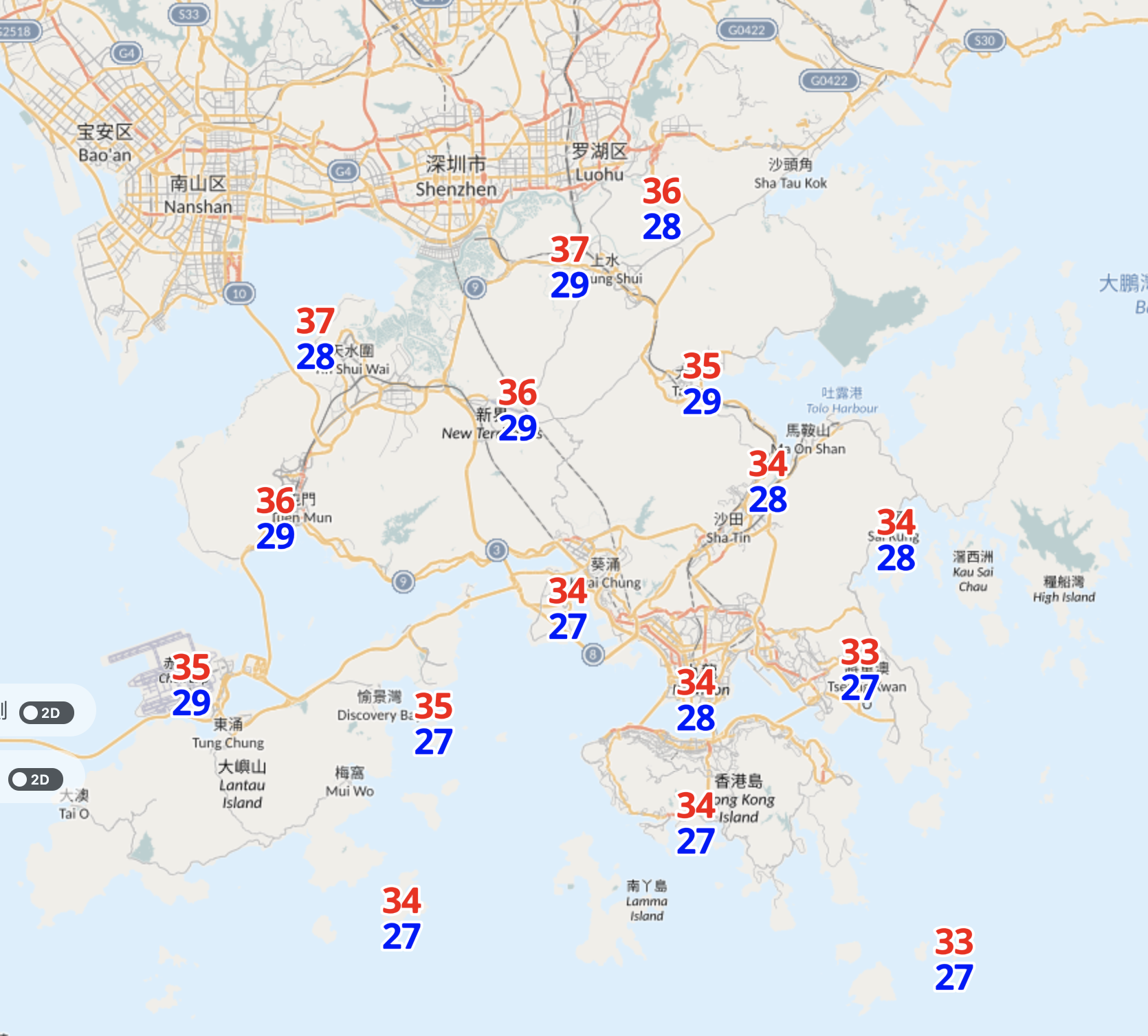 🥵 多區超 34°C :濕地公園35.1°C、打鼓嶺34.9°C、黃大仙34.9°C