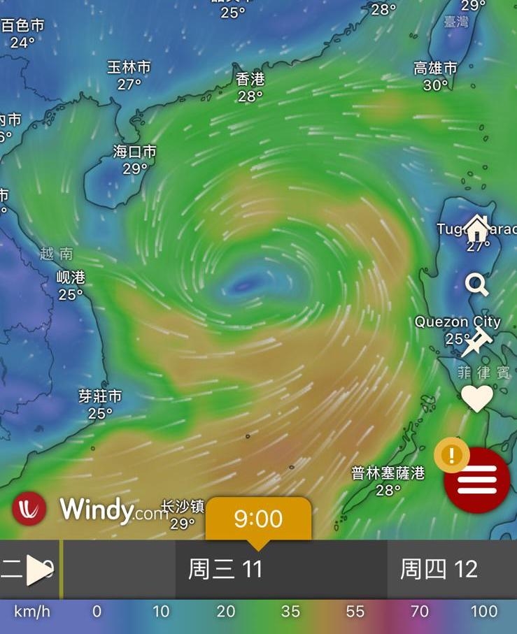 隨着「蝴蝶」逼近本港,本周後期風勢頗大,間中有狂風驟雨,海有湧浪。由於天氣變化較大。該氣旋預料移向廣東西部至海南島 ,料周三(6月11日)早上或掛號風球,周四(6月12日)更可能需改發更高風球信號 ,期間本港將出現以下天氣情況。