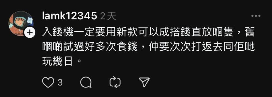 💬有網民提醒用自動櫃員機存錢的人士,記得舊款存錢機經常會發生「食錢」的情況。