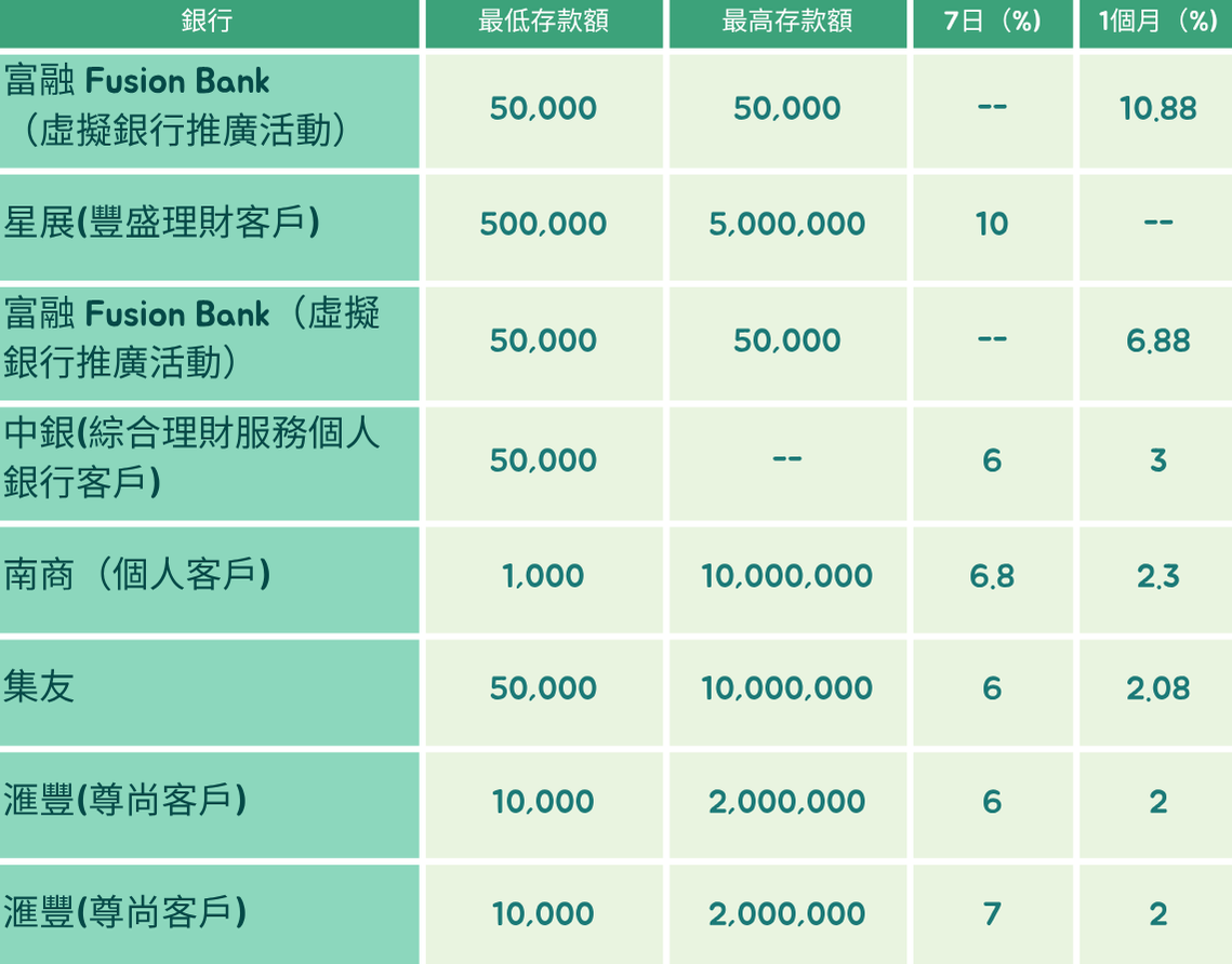 💵 利息:每$100,000港元,7日可賺$97.22港元