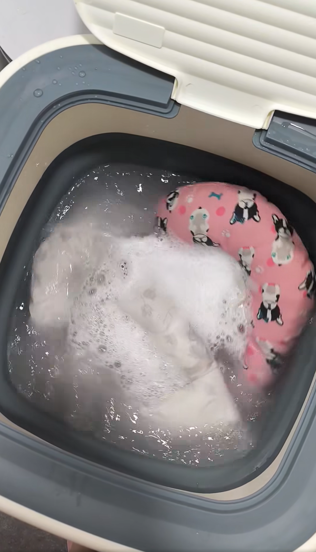事主指以往一直都是手洗狗狗物品,後來改以一部小型摺疊式洗衣機清洗,惟使用9個月就故障,因摩打不夠力,最近便購買另一部較大型的摺疊式洗衣機,並大讚好用。