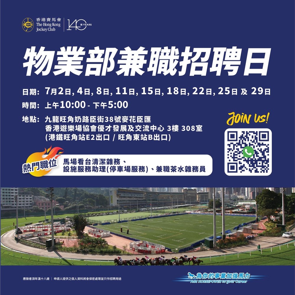 【兼職】recruit4@hkjc.org.hk、 6110 5055(WhatsApp)