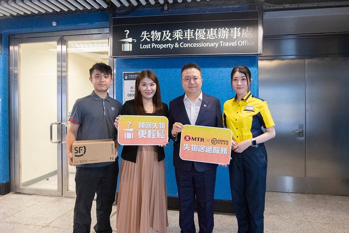 乘客於港鐵網絡遺失或留下個人財物,乘客於港鐡網頁或MTR Mobile App登記,港鐡如有拾獲,會盡快安排進行失物認領,並委託順豐香港將失物寄往指定地址。