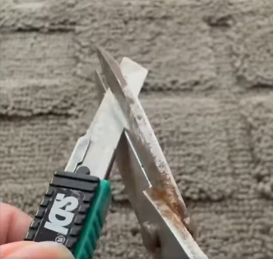 至於如剪刀變鈍,只需把剪刀在𠝹刀的刀背來回剪數10次,如磨刀一樣,一直重覆直至剪刀變順為止,剪刀便能回復鋒利。