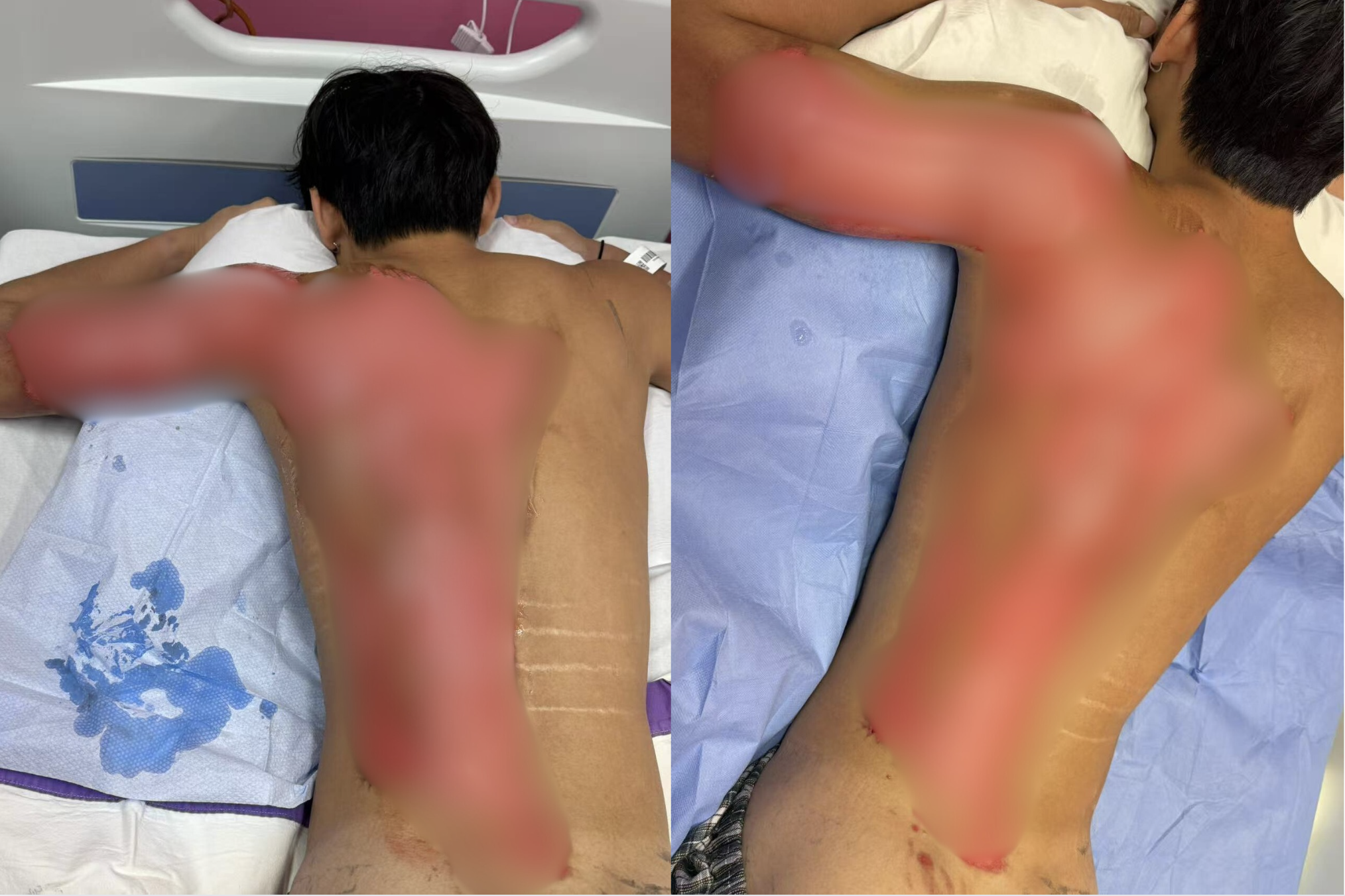 🔵唯發文者看到兒子清理傷口時背部傷口仍有血水滲出,已拒絕院方的出買要求。