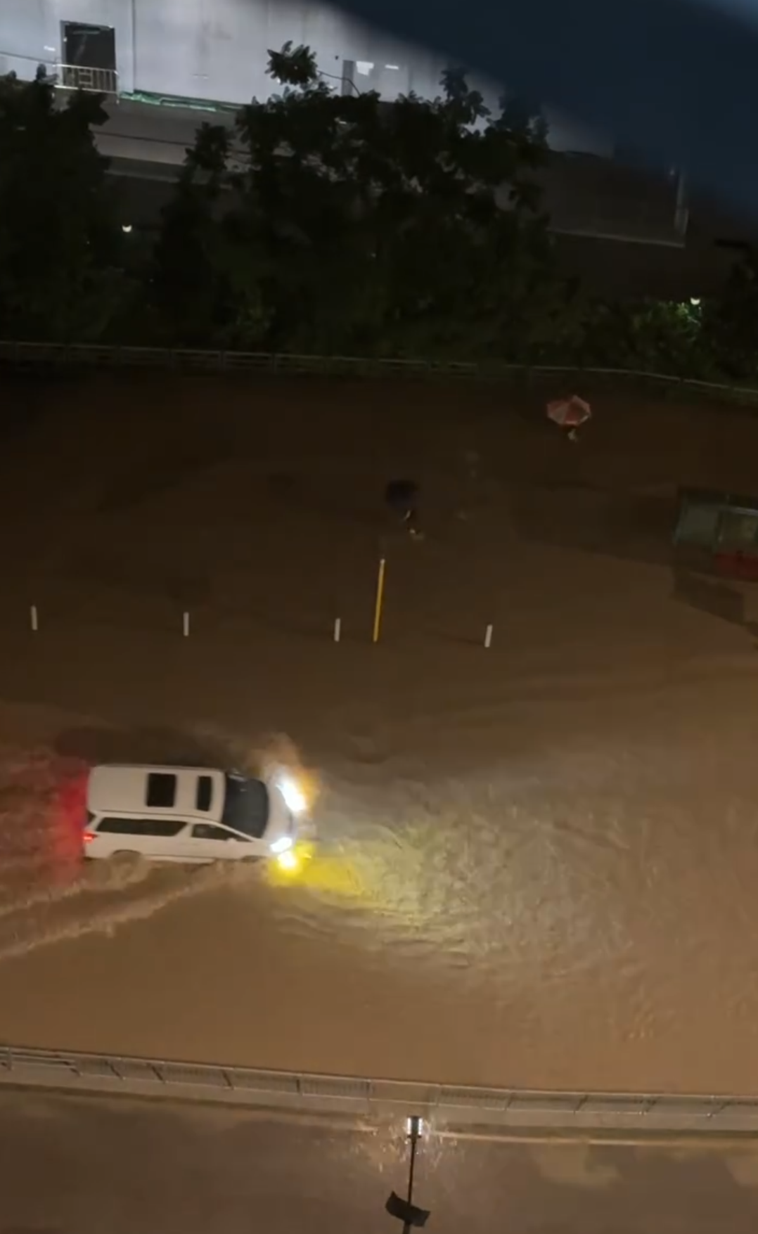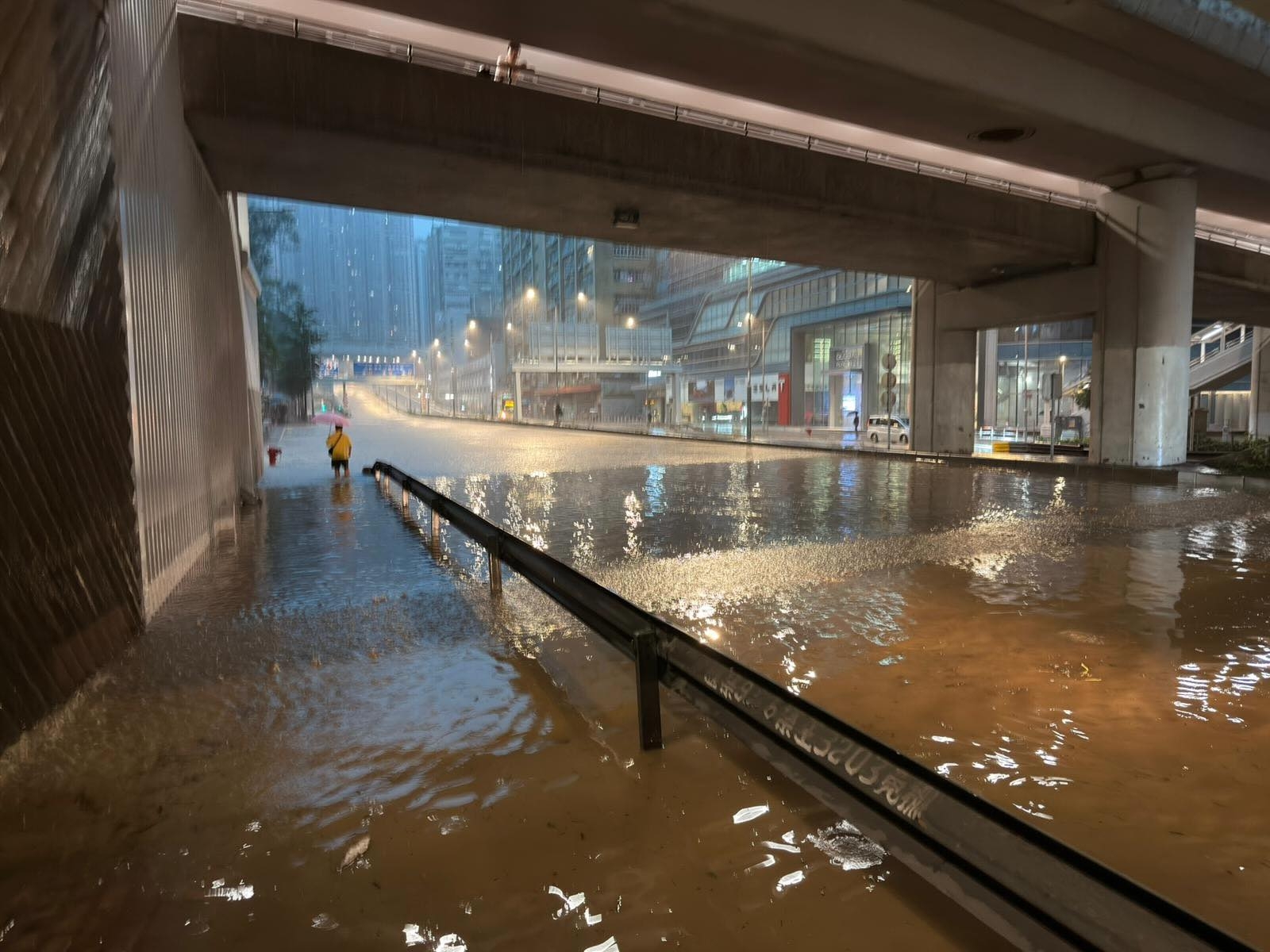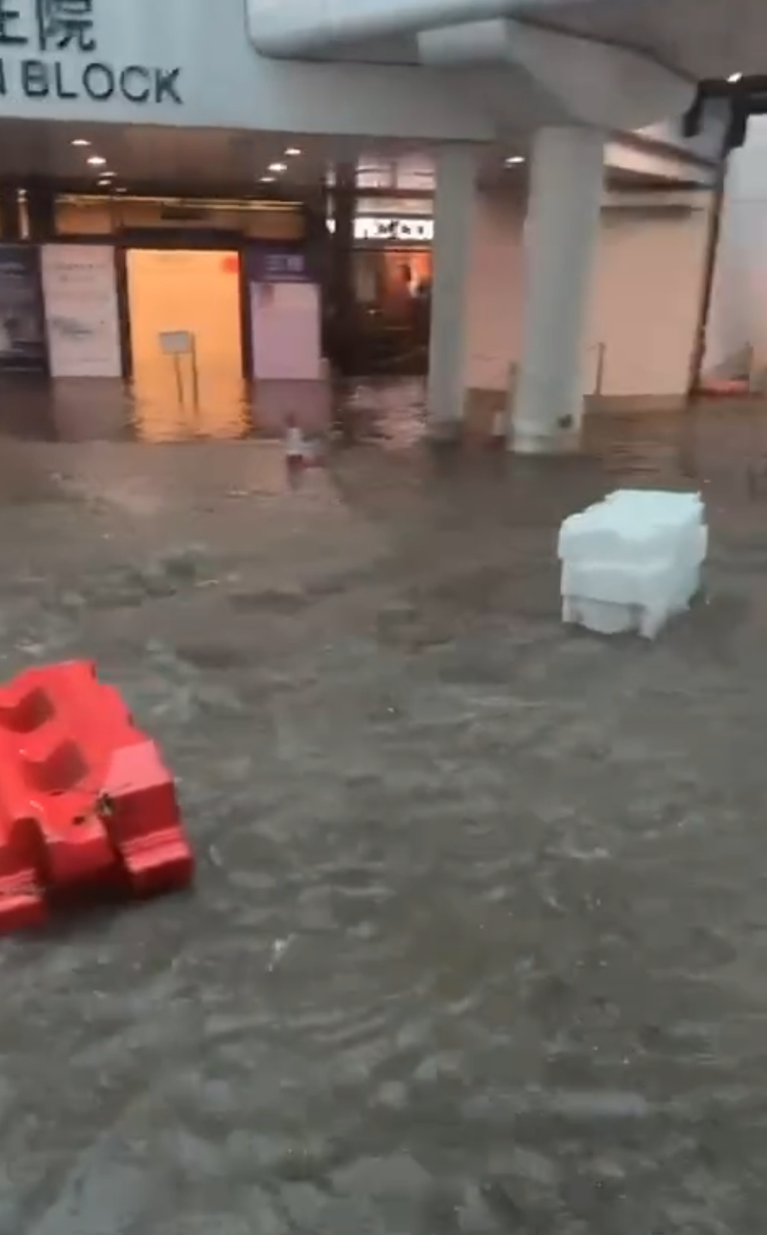 在惡劣天氣下,各區均出現嚴重水浸情況。有網民在Threads轉載影片,只見有醫院門外出現水浸,水馬等設備四處漂浮。但都有網民因要到醫院探望家人,不得不涉水前往醫院,只見有水流如同小型瀑布。