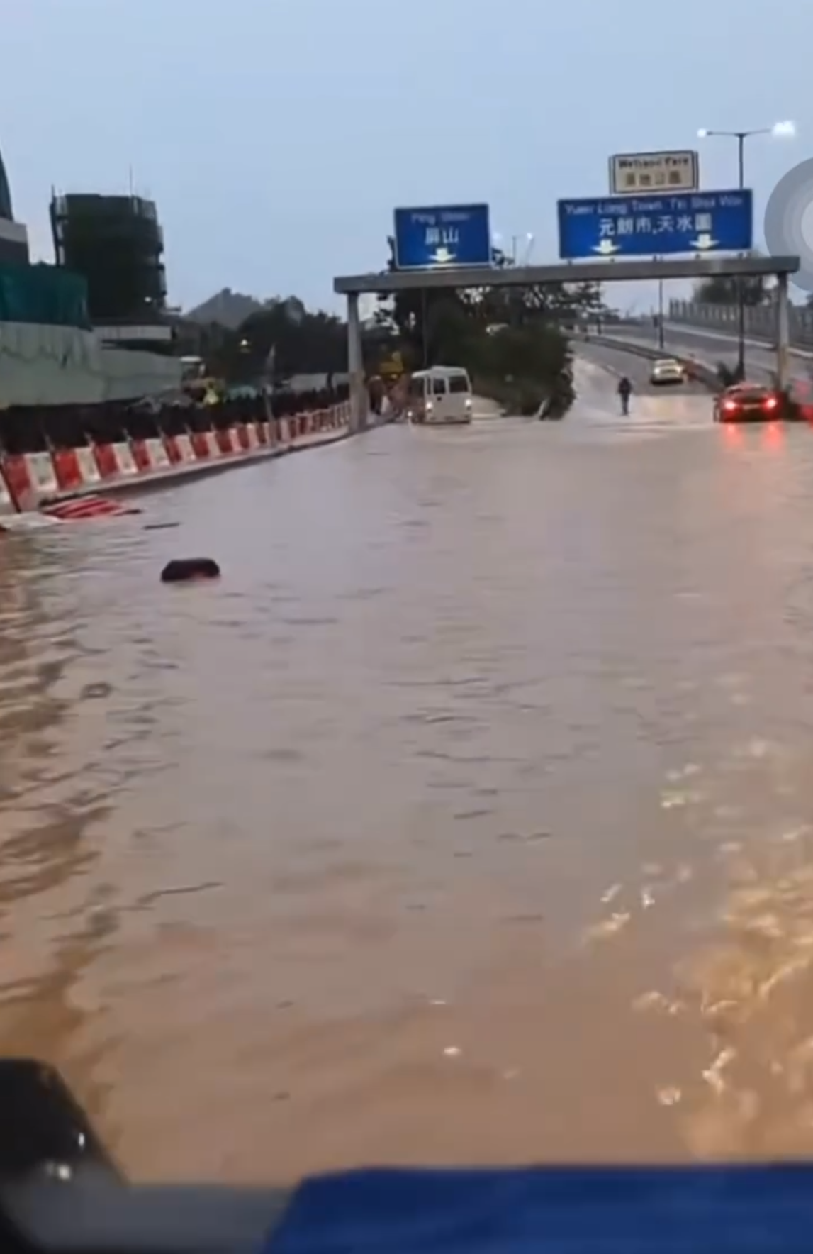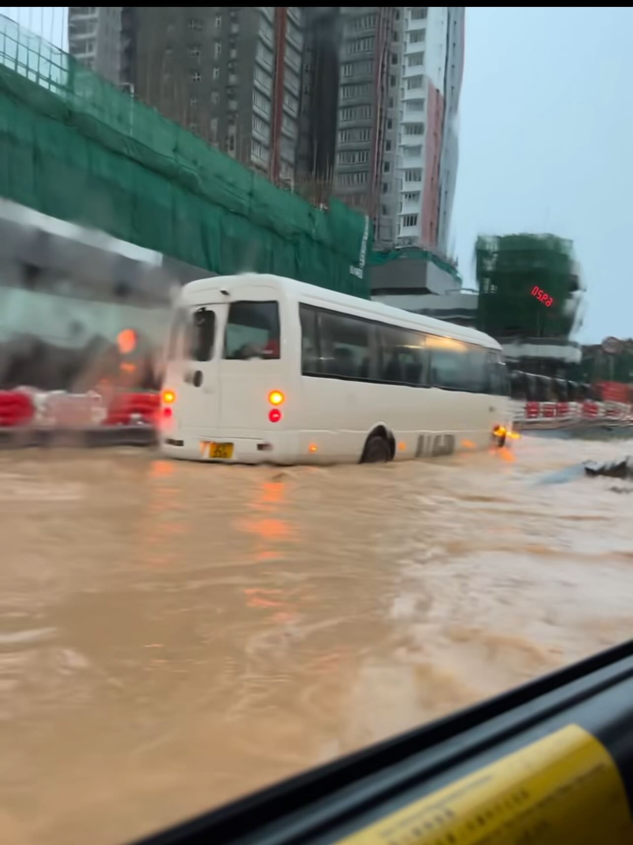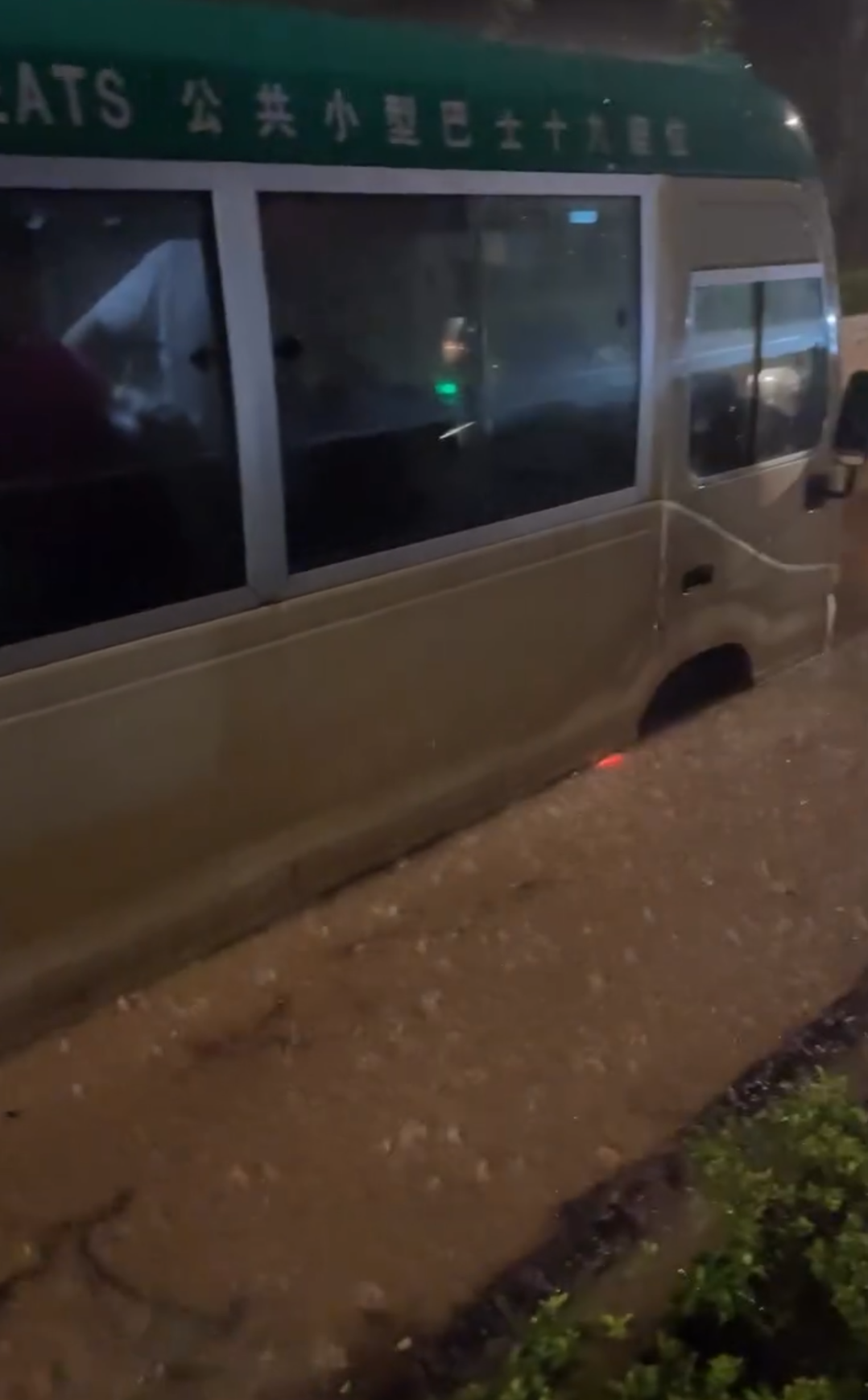 另有網民分享昨晚(4日)放工後乘坐小巴回家,途中下著傾盆大雨,有路段水浸,導致小巴死火,雨水浸至車箱樓梯位,全車人被困車中 ,事主最終決定跳出車窗待消防員救援,「在未到(有)救護人員情況下,我救援咗2名乘客逃車!好彩是輕微擦傷」。今早亦有網民分享乘搭巴士上班途中,如同「行過紅海」一樣,笑言「坐橡皮艇都唔掂」。