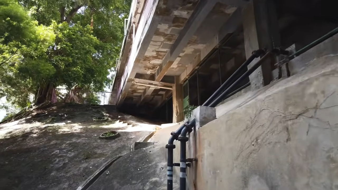 YouTube「香港人」指據田灣華貴邨街坊福利會理事長謝先生說,該棺材一直留在居民協會對上的巴士站草叢,但早已被石屎封閉。