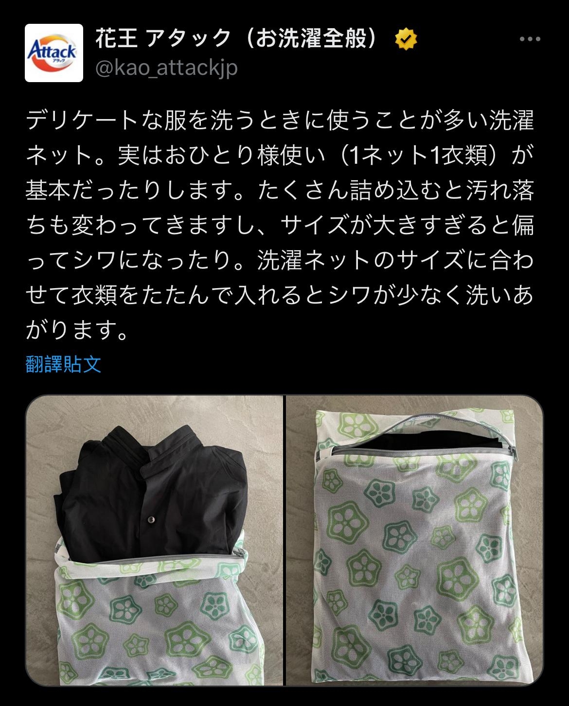 【家事常識/洗衫/洗衣袋/洗衣袋衛生/洗衣袋冷知識/家居清潔】唔少人洗衫都會用洗衣袋,但原來99%的人係用錯。日本洗潔用品品牌花王在X官方帳戶教大家3個方法如何正確使用洗衣袋,用得正確的,衣服才會洗得乾淨兼唔會皺。文中有解釋使用洗衣袋好處,以及講解一情況下,使用洗衣袋會整壞洗衣機。