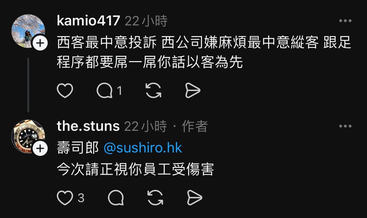 💬行為引發大量網民公憤,不少人認為店員得慘,甚至Tag壽司郎要求正視員工受到傷害。