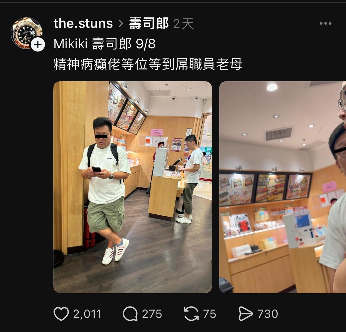 一家三口壽司郎粗口辱罵店員