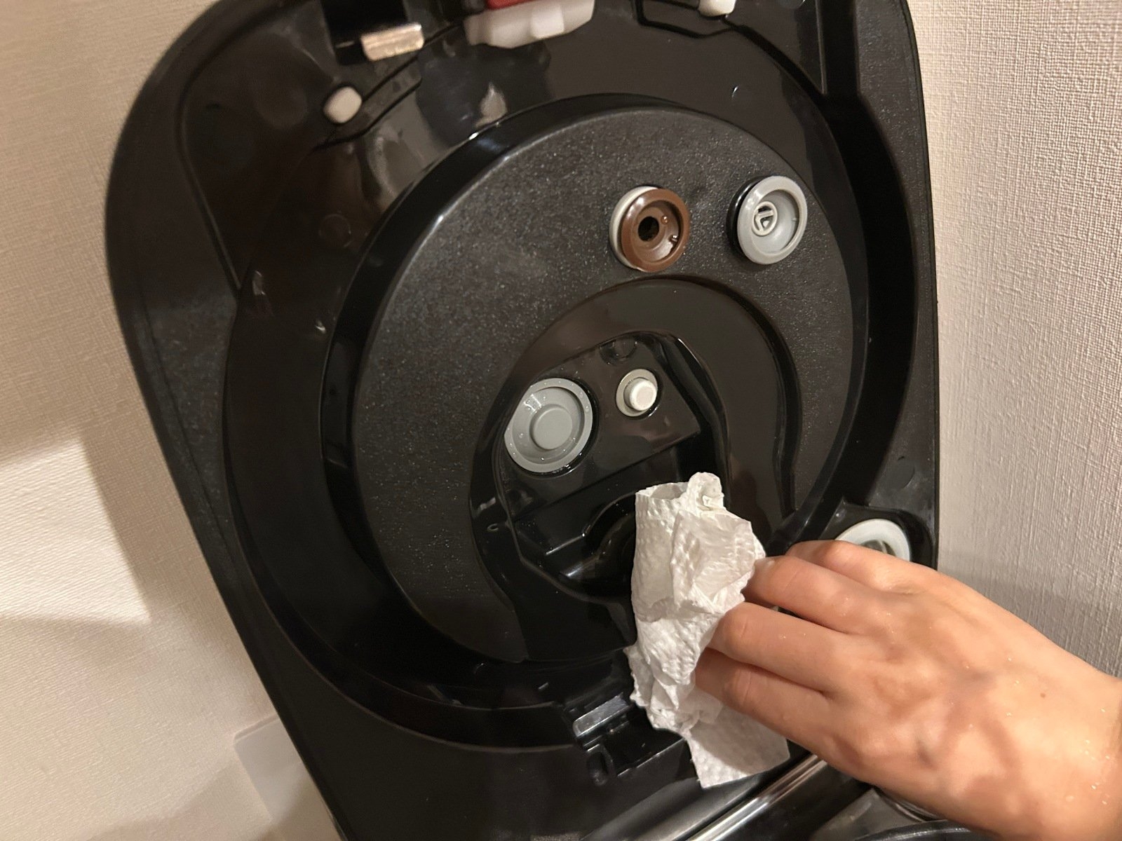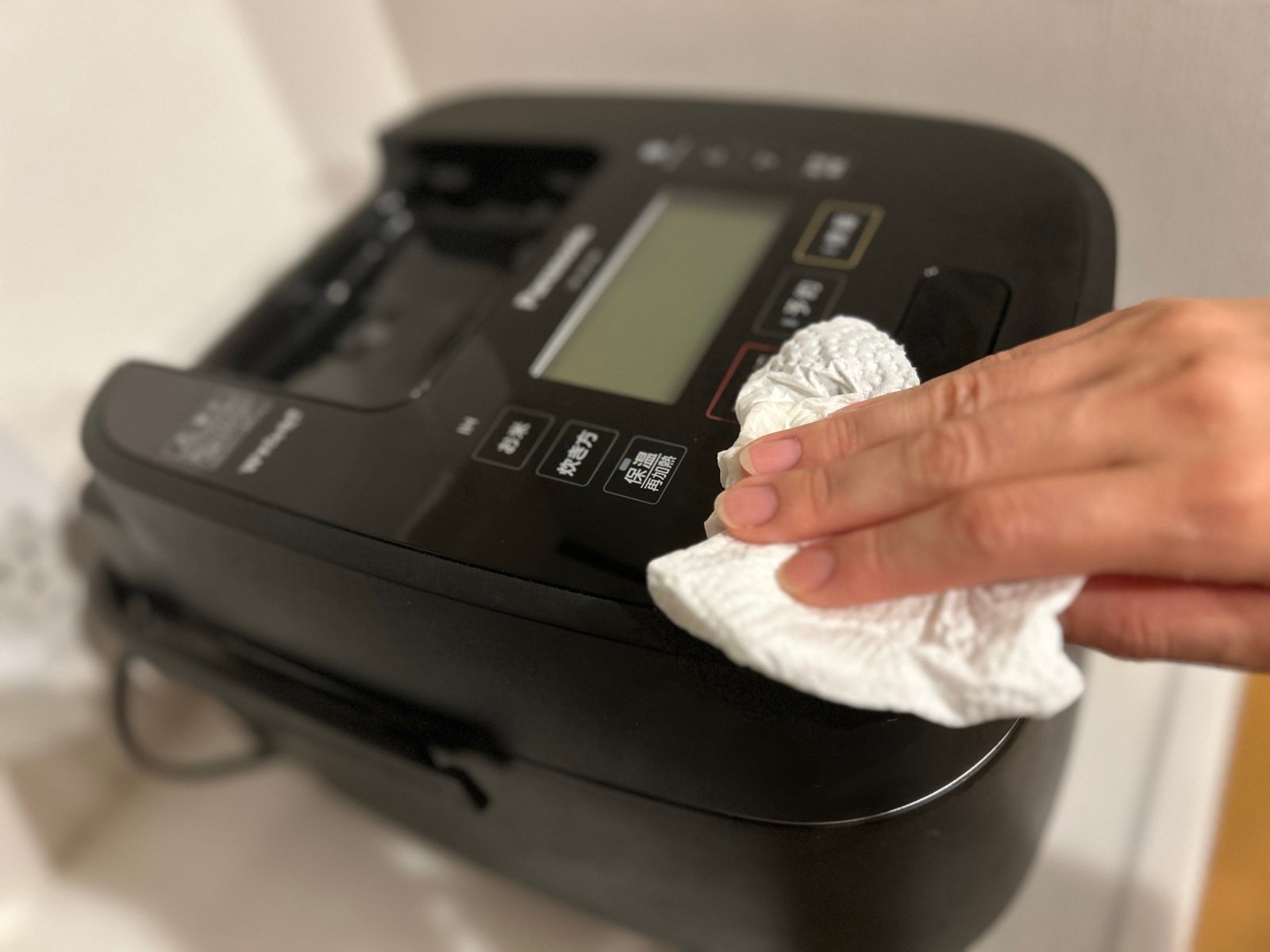 - 解決方法:用濕布或擰乾的廚房紙擦拭。