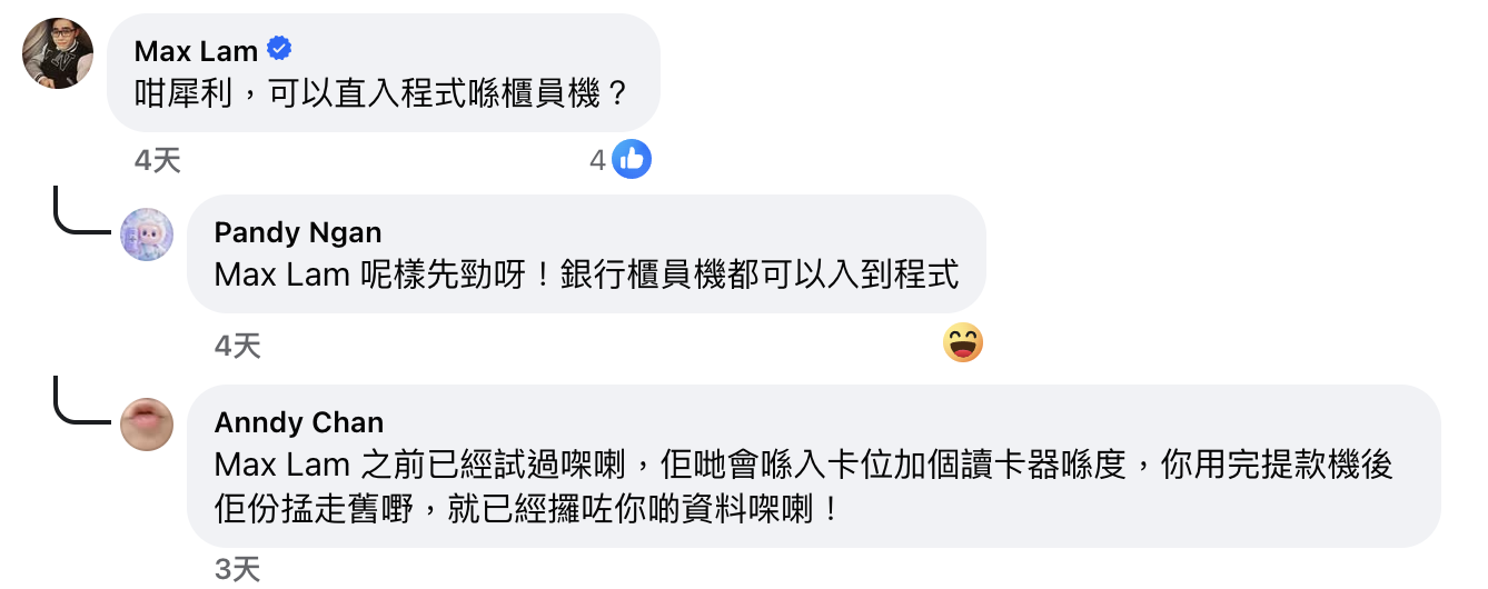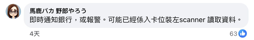 🟠 不少網民均表示該櫃員機可能已被裝讀卡器,套取了提款人卡內資料。
