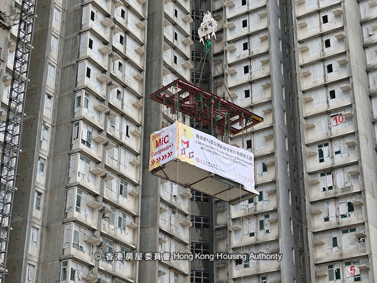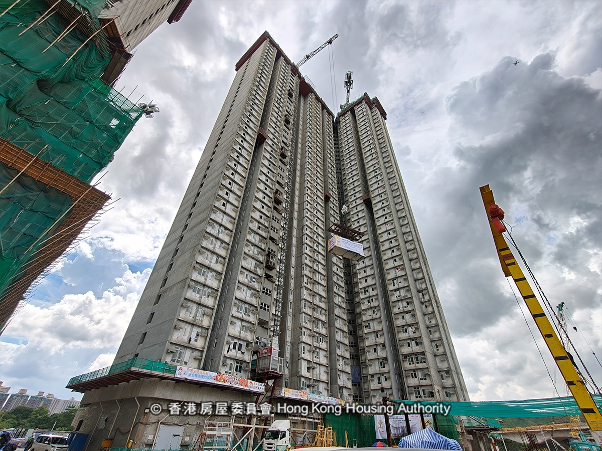 【北部都會區/粉嶺北新發展區/粉嶺新建公屋/鳳凰嶺邨/房委會/香港公屋/新建公屋/MiC技術公屋大廈】粉嶺北新發展區首個公營房屋項目——鳳凰嶺邨於2025年8月21日舉行平頂儀式。近年來,香港新建公屋普遍採用混凝土組裝合成(MiC)技術,鳳凰嶺邨更是香港首棟以MiC技術建造的40層高公屋,同時也是全港規模最大的單一MiC大廈。