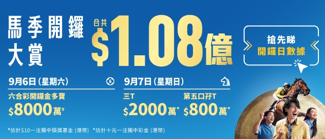 💰 頭獎估計:以每注10港元計算,頭獎金額有機會達8,000萬港元