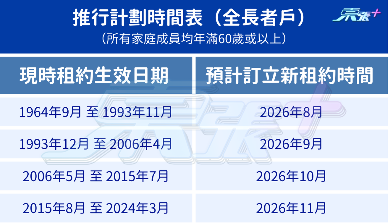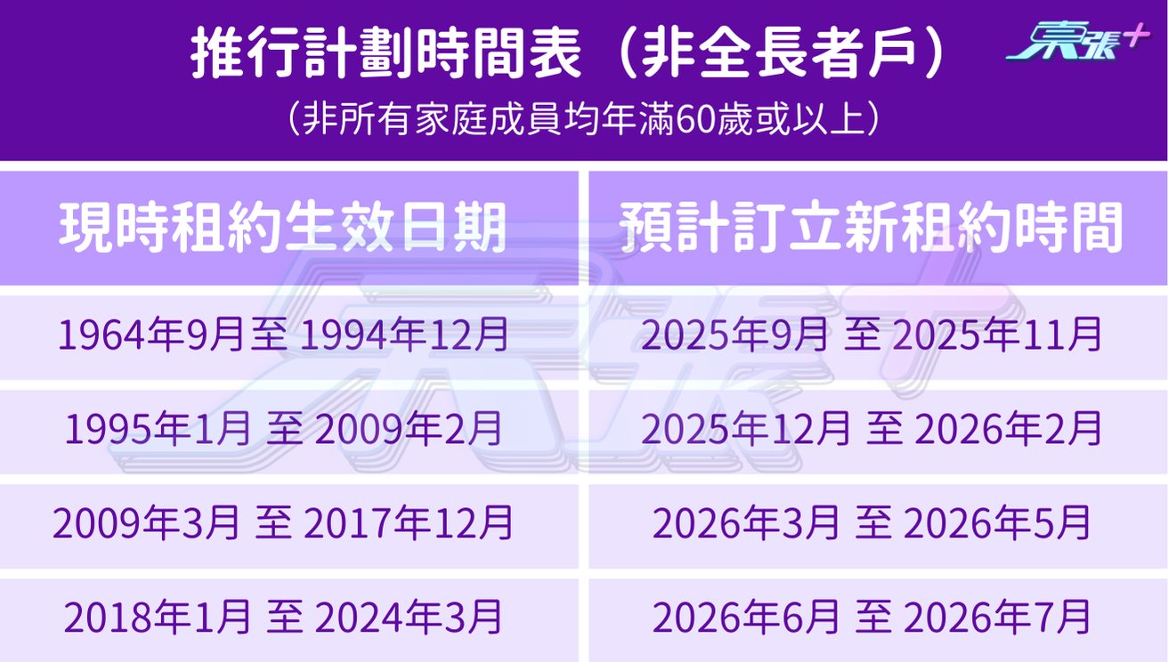 🟣【全長者戶安排】所有家庭成員均60歲或以上的租戶將於2026年8月或之後陸續收到新租約。