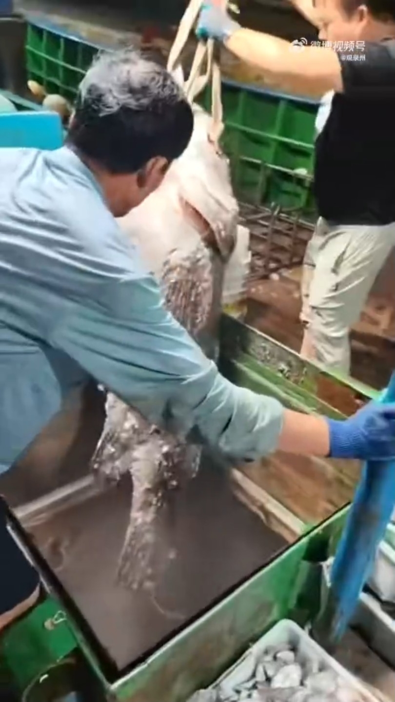 【巨型石斑/漁民/石斑魚/上岸/價錢/售出/釣魚】綜合內媒報道,在9月11日晚上,福建泉州惠安縣小岞鎮一名叫黃昆強的漁民,在台灣海峽捕獲一條長約1.8米、重達250斤的巨型石斑魚。