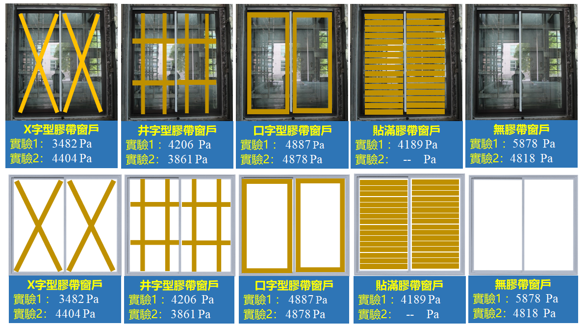 颱風下璃窗貼膠紙防爆|台灣建築研究所實驗