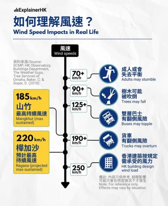 Explainer HK圖表表達「樺加沙」風速危險性: