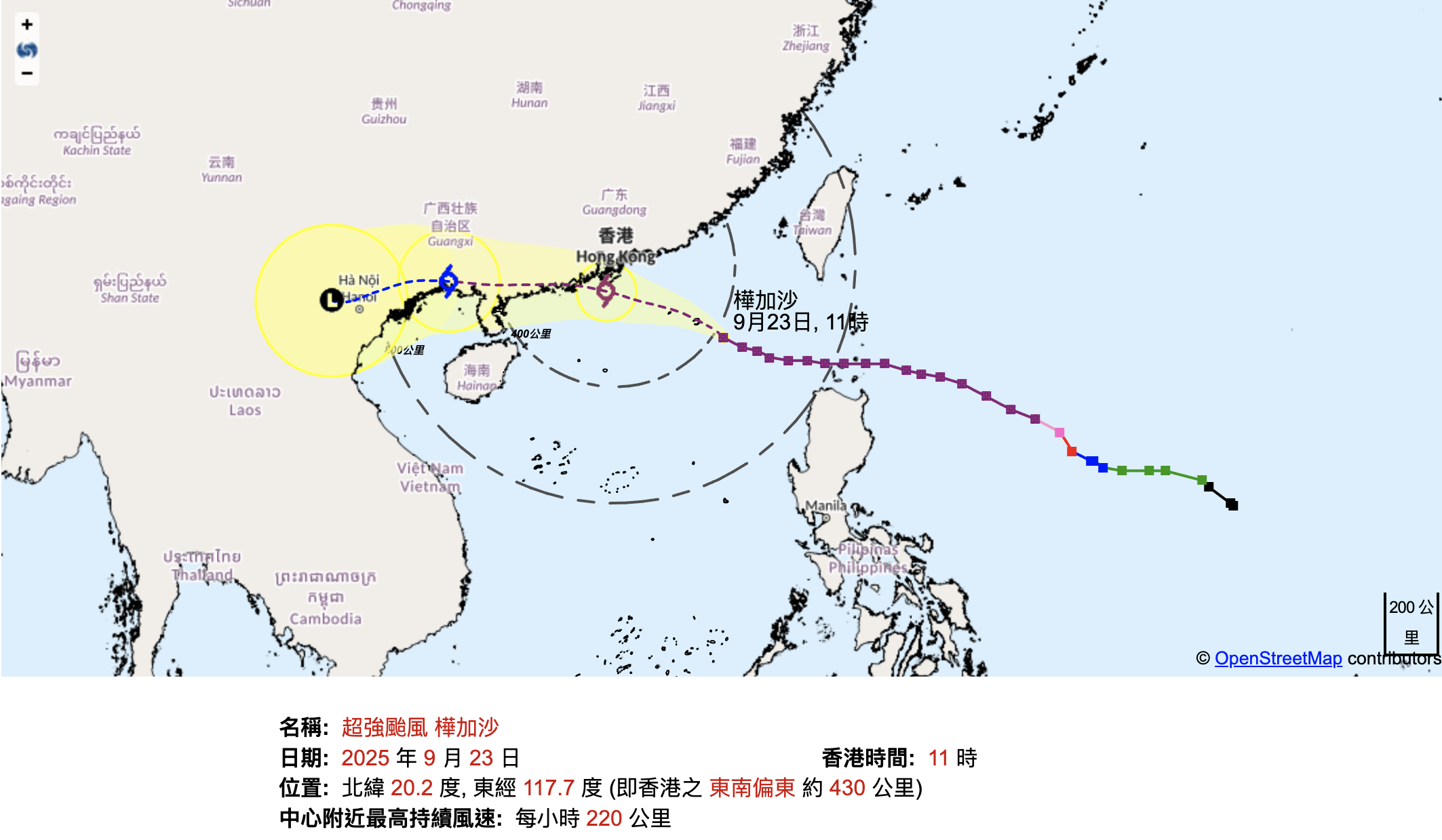 ⭐ 樺加沙每小時最高220公里風速,如進一步升高,有機會衝擊香港建築物承受能力。請留在家中,避免外出「追風」造成危險。