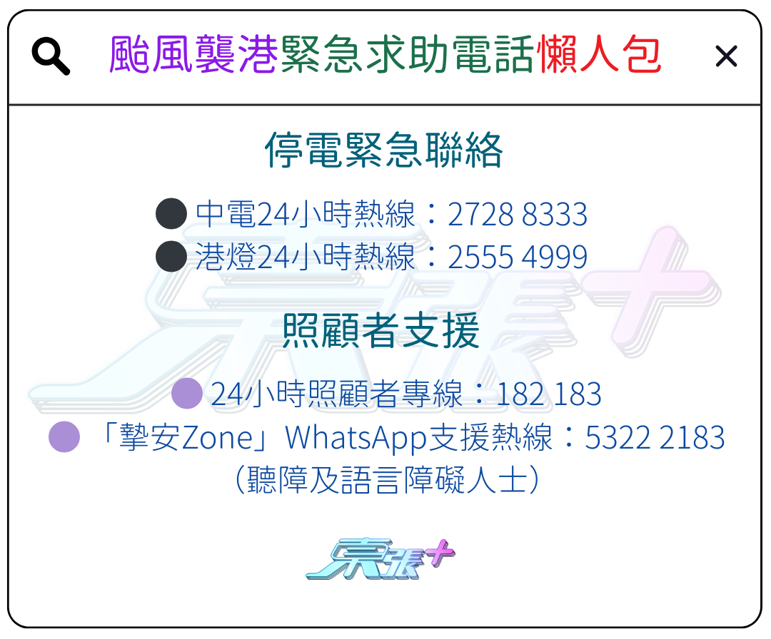 【查詢項目】顧及颱風期間的緊急事故報告及支援協助。