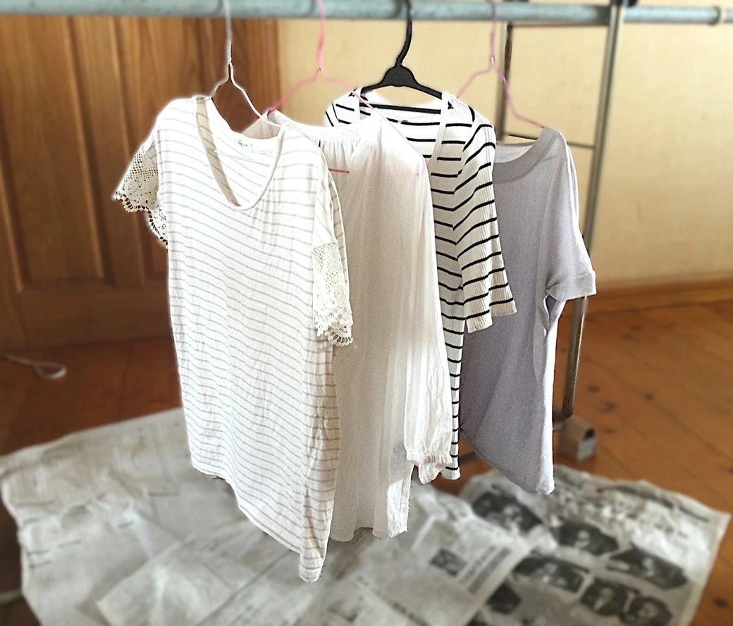 【方法 2️⃣】吊掛於衣物中間,幫助濕氣散去。