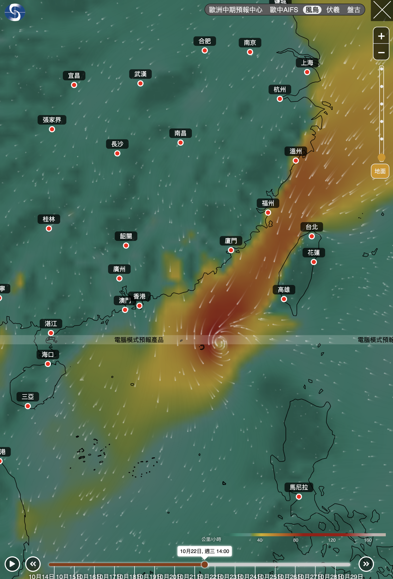 ❄️ 冷空氣交匯:10月18日後有一股中等強度冷空氣南下,可能與「風神」外圍環流交互,導致風雨加劇或颱風結構被削弱。