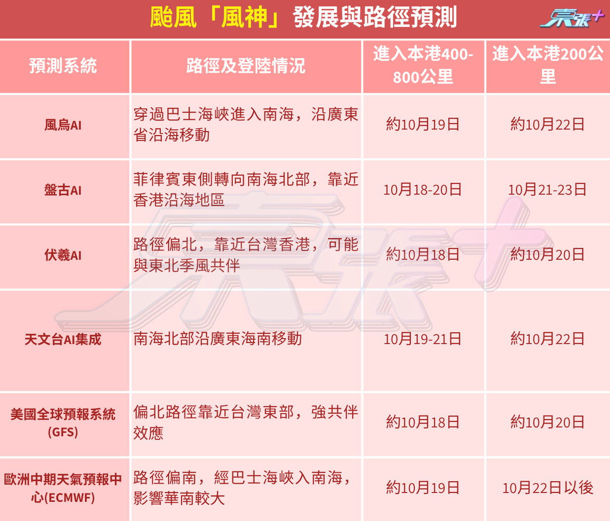 - 預測路徑及登陸情況:結合多模式數據,風神多半會進入南海北部,約在廣東海南沿海移動。