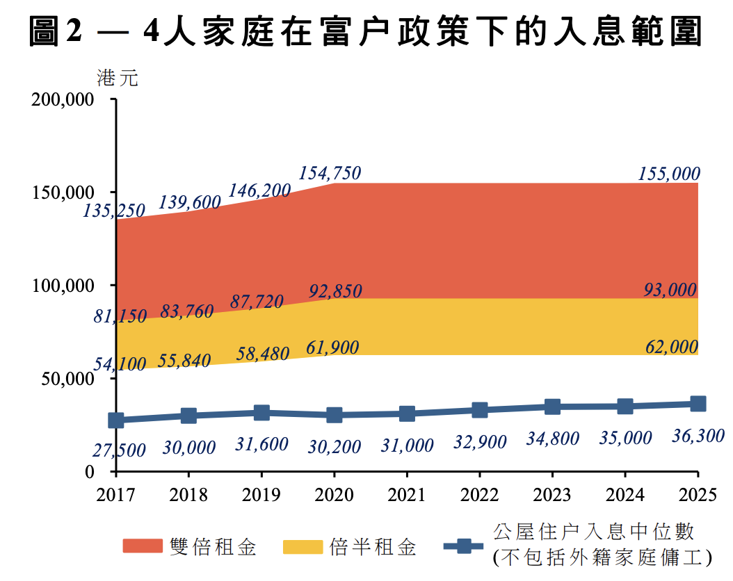 2️⃣ 住戶入息增長:四人家庭中位數由27,500元升至36,300元