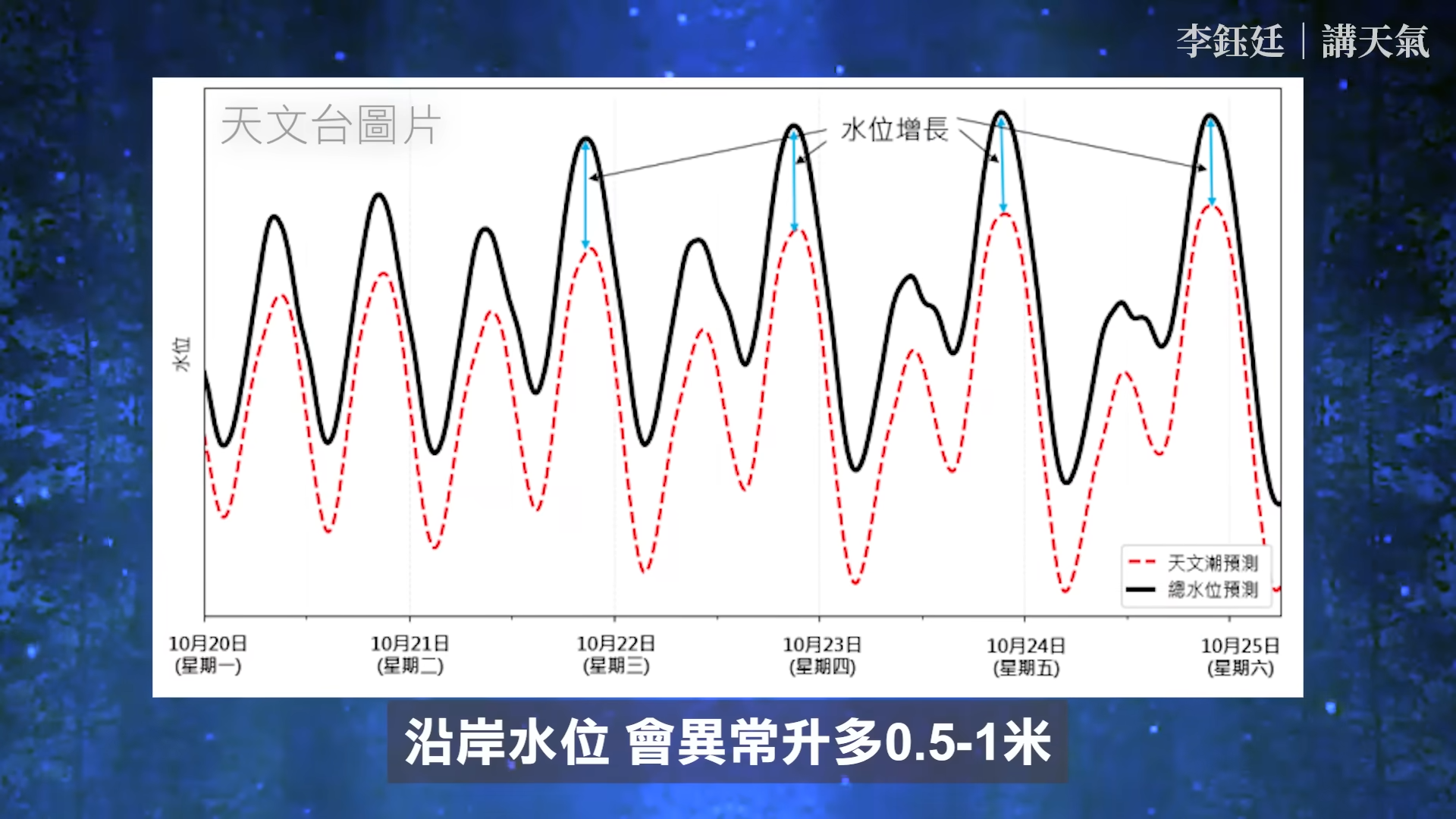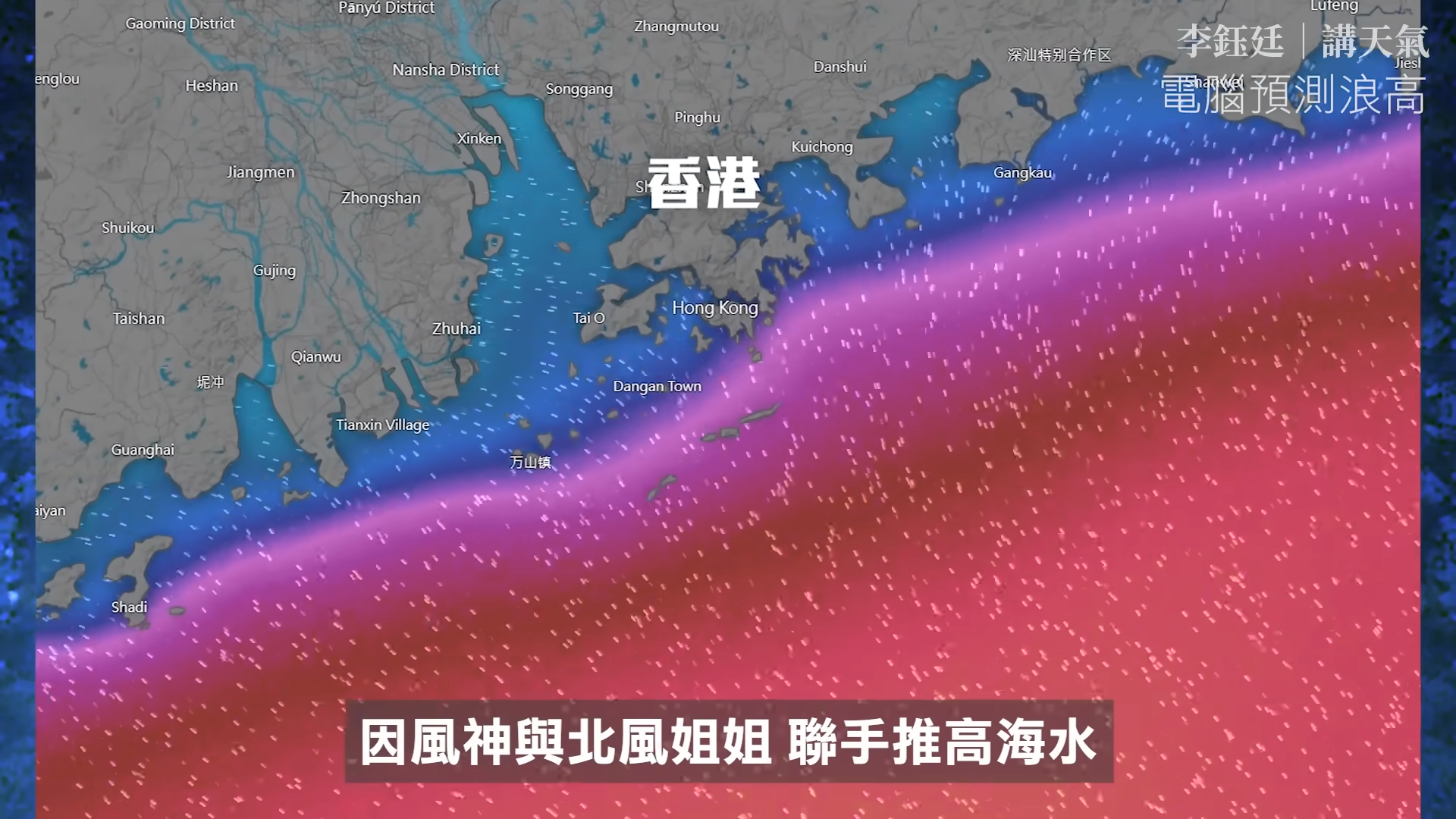 🟣「風神」與北風聯手推高海水,又撞正天文大潮,會連續好幾晚漲潮時沿岸水位會異常升高0.5-1米。部分低窪地區可能會水浸。