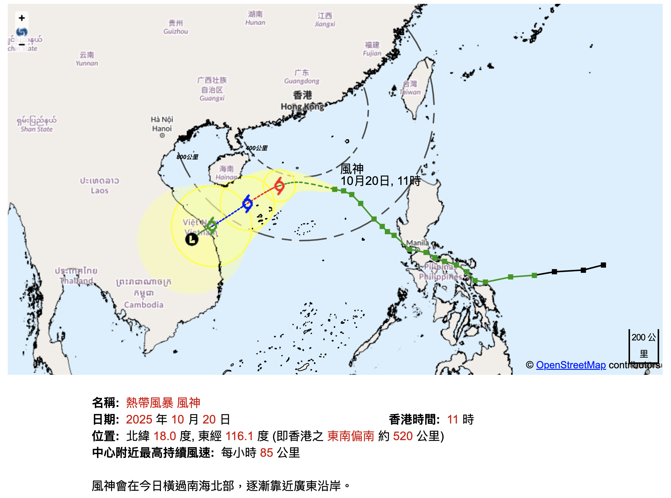 🔵 「風神」與香港距離:超過400公里