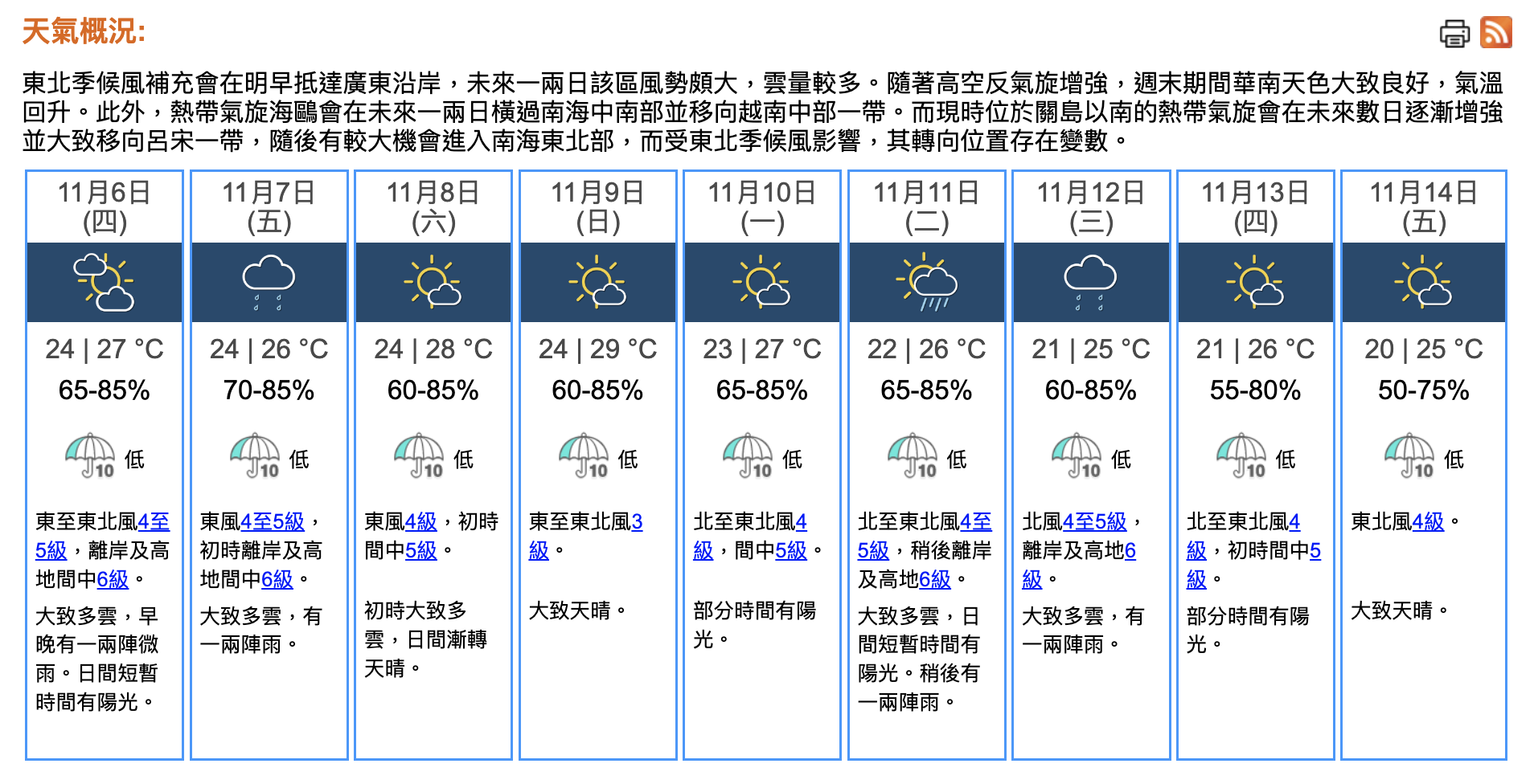 【香港打風|季候風|天氣預測|香港天氣預報|颱風海鷗|颱風鳳凰|熱帶氣旋】25號強颱風海鷗現已進入南海,預計於11月6日夜間在越南中部沿海登陸,將帶來強風雨影響南海及華南沿海地區。香港天文台在博客《天氣隨筆》中表示,關島以南有熱帶低氣壓有機會增強為颱風「鳳凰」,預計下周中期可能影響廣東東部及珠江口附近,香港將迎來頻密降雨及水位上升,天氣轉涼。