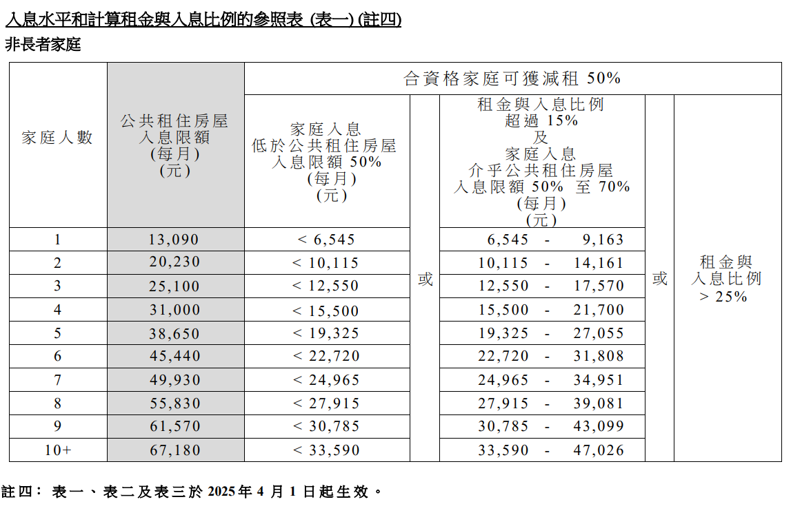 半額津貼住戶每月入息上限