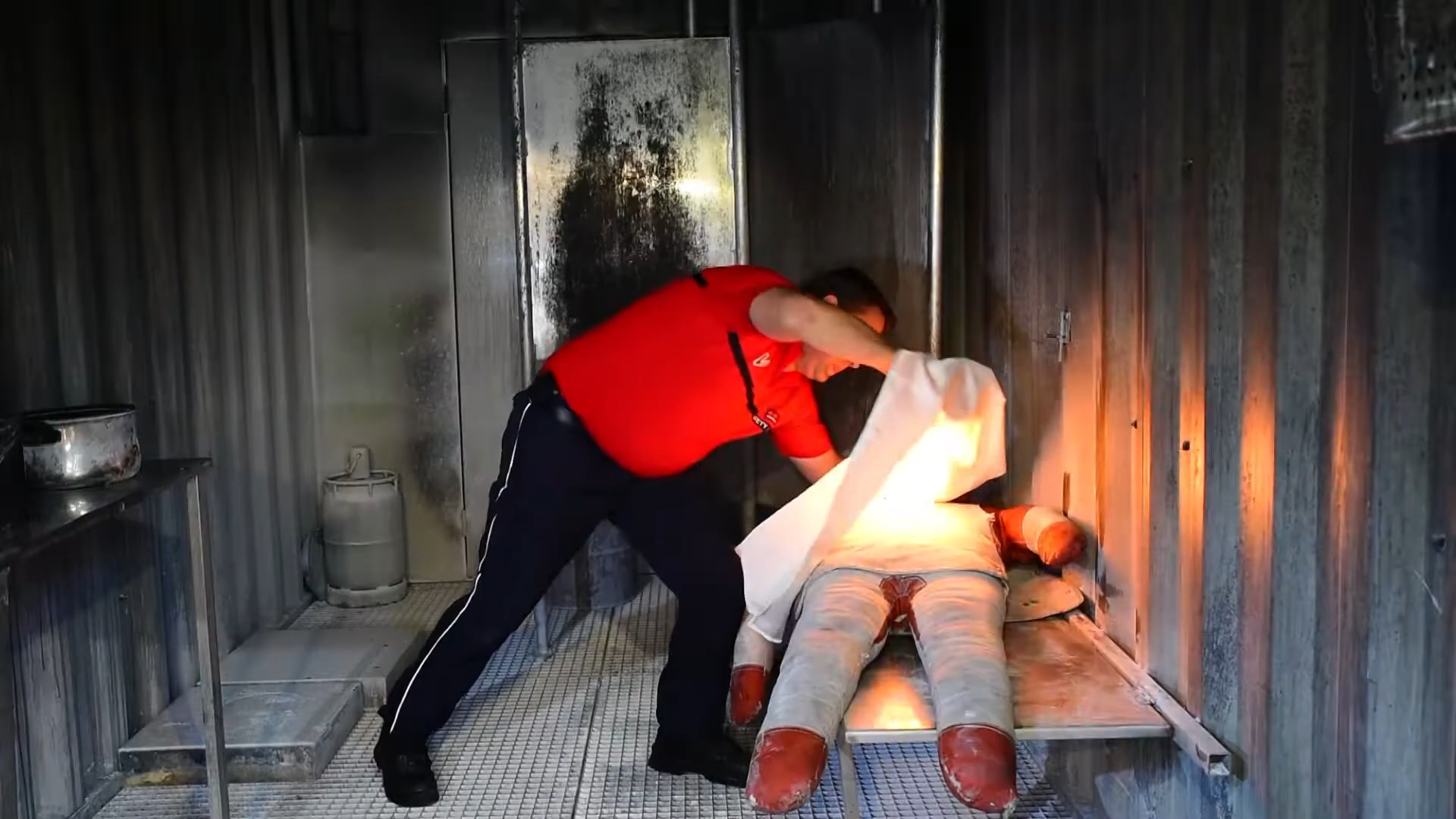 • 如果衣物著火,立即倒地,用防火毯從頭部開始包裹全身,撲滅火焰。