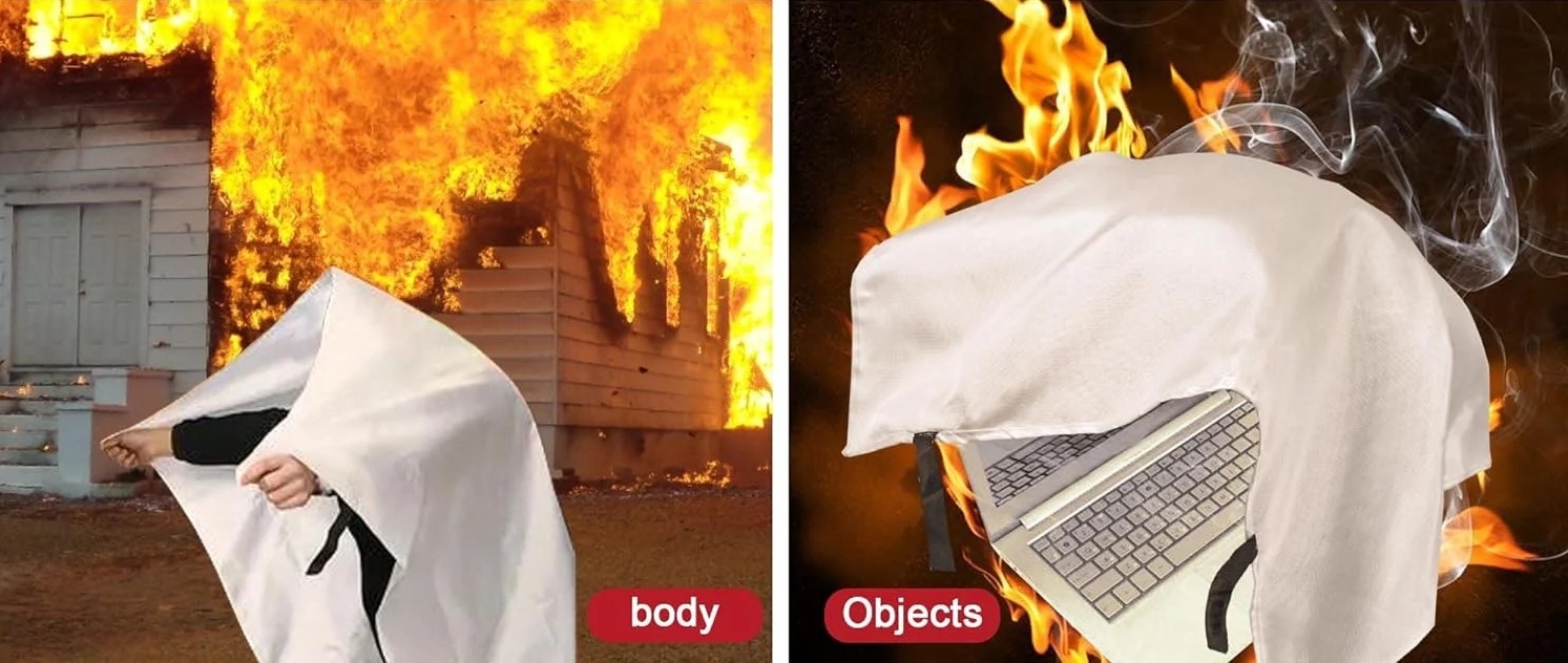 防火毯是一物兩用,既能滅火,也能於火災逃生保護身體: