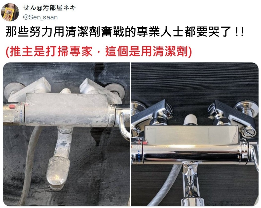 日本X平台(前Twitter)一位網友「にのみや」分享,用烘焙紙(又稱烘培紙或油紙)乾擦水龍頭,就能快速清除水垢,令金屬表面光亮如新,看起來猶如新安裝水龍頭。貼文爆紅後,累積超過10萬讚及轉發,更多日本網友跟著在家實測,紛紛上載前後對比照,表示「水垢直接掉光」「水龍頭變得超級亮晶晶」。烘焙紙原本是常見烘焙工具,香港超市如惠康、百佳、Donki等都能買到,每張成本不到5毫子,已經可以同時兼顧去水垢、抹水漬、拋光效果。
