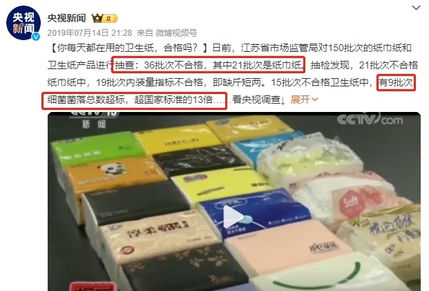 央視《每周質量報告》曾抽查內地市面逾百批紙巾及廁紙樣本,結果發現: