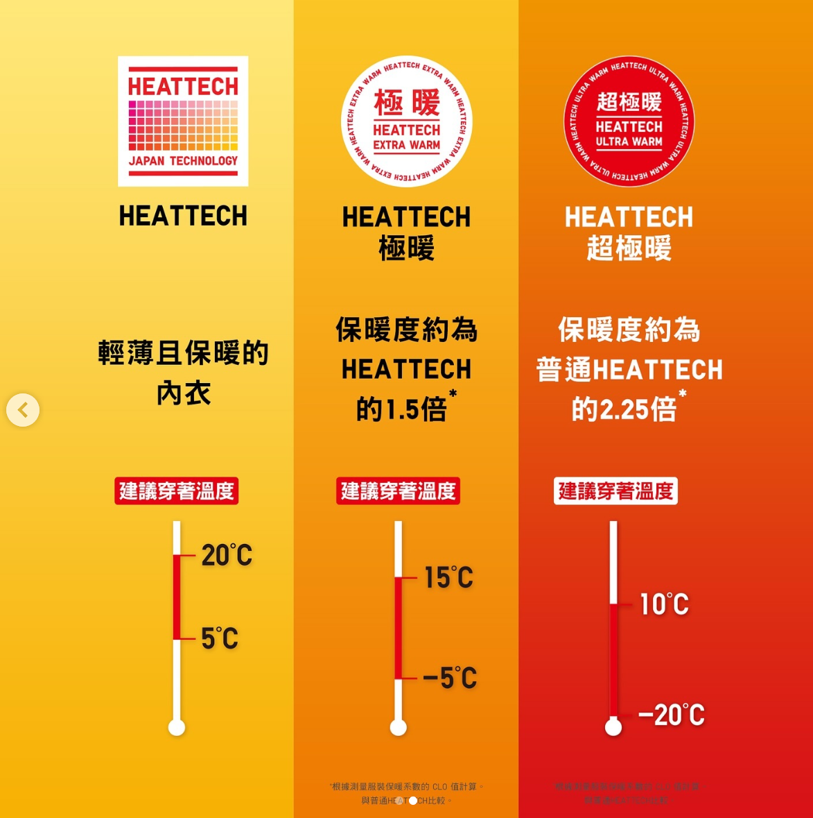 - Heattech: 吸濕發熱、保暖