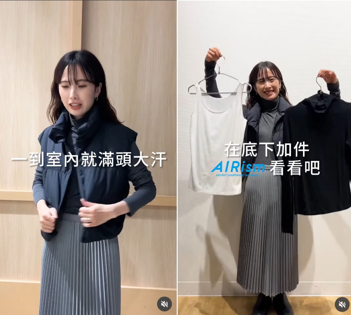 ✅ 疊穿可讓汗水先被 Airism 帶走,再由 Heattech 發熱,避免「一入室內就焗到出汗」。
