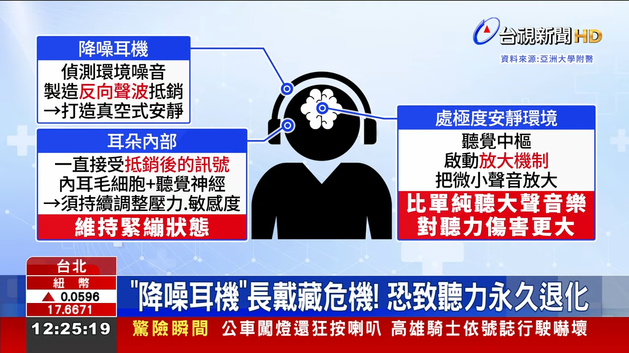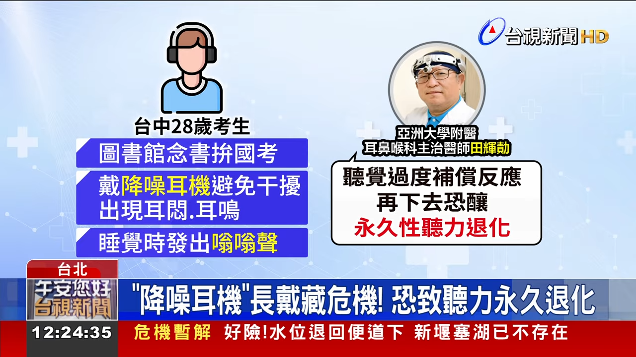 台灣一名 28 歲考生長期依賴降噪耳機溫書,從早到晚幾乎不離耳,耳朵長時間沒有休息。數周後,他開始出現耳悶、耳鳴、頭暈,甚至睡覺時耳中仍持續嗡嗡作響。經醫生檢查後發現,症狀源於長時間使用降噪耳機,令聽覺系統出現「過度補償反應」,若持續不節制,恐加速聽力退化。
