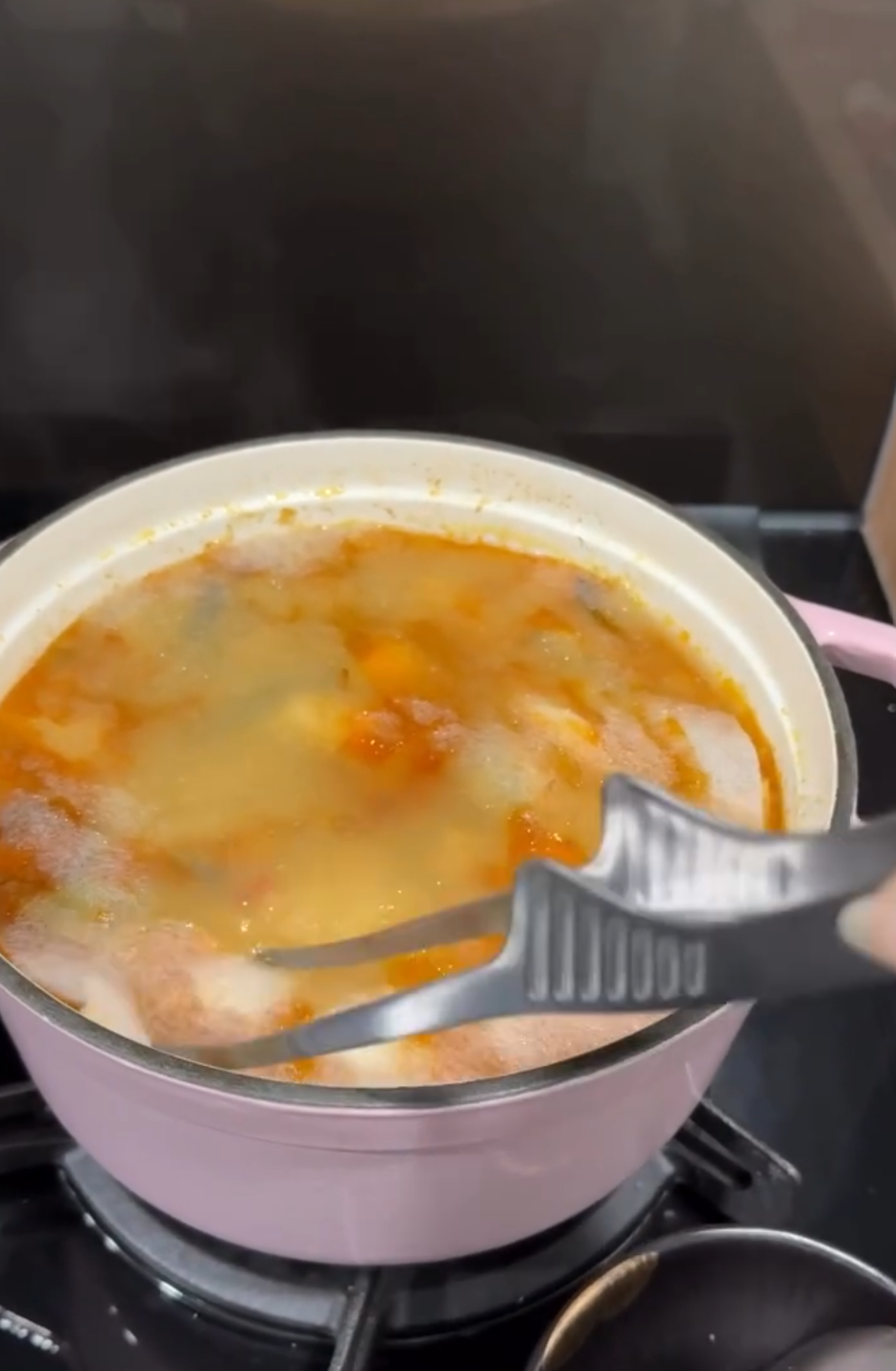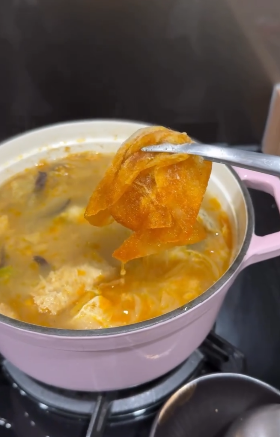 【廚房/好物/匙羹/湯面/浮油/神器/油脂】台灣一名女網民在Threads發帖,分享一件廚房好物。她指早前煮冷凍食品,煮滾後湯面有一層油脂,但她急著要吃,沒有時間再冷藏或用湯匙舀走浮油,遂利用一款「吸油紙」吸附油脂。