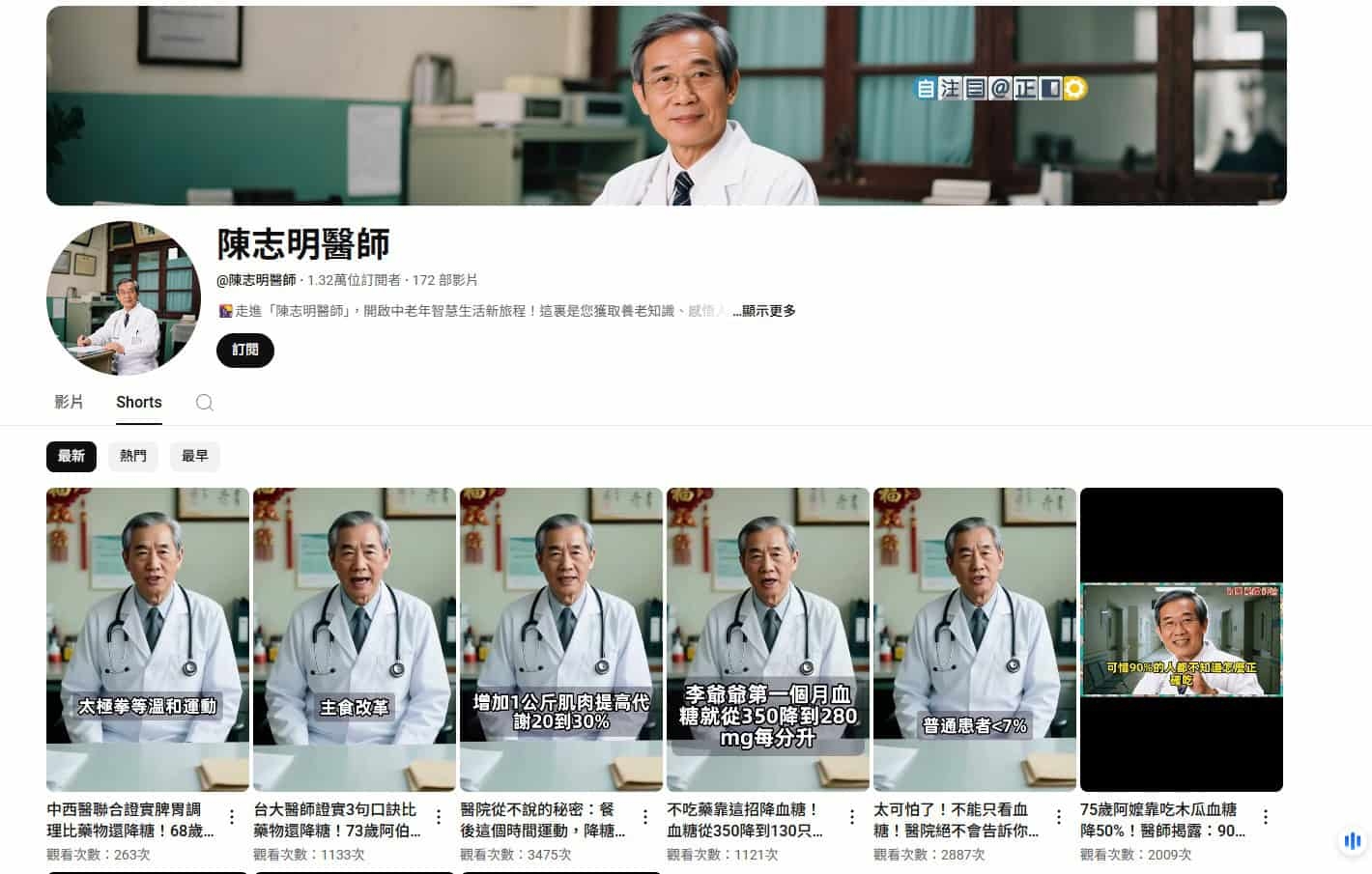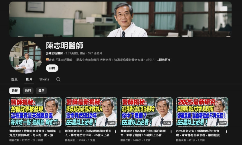 「陳志明醫生」YouTube頻道主要分享健康知識,焦點放在糖尿病管理、血糖控制及營養學建議。頻道影片風格專業,看似由資深醫師講解,吸引大量觀眾關注。