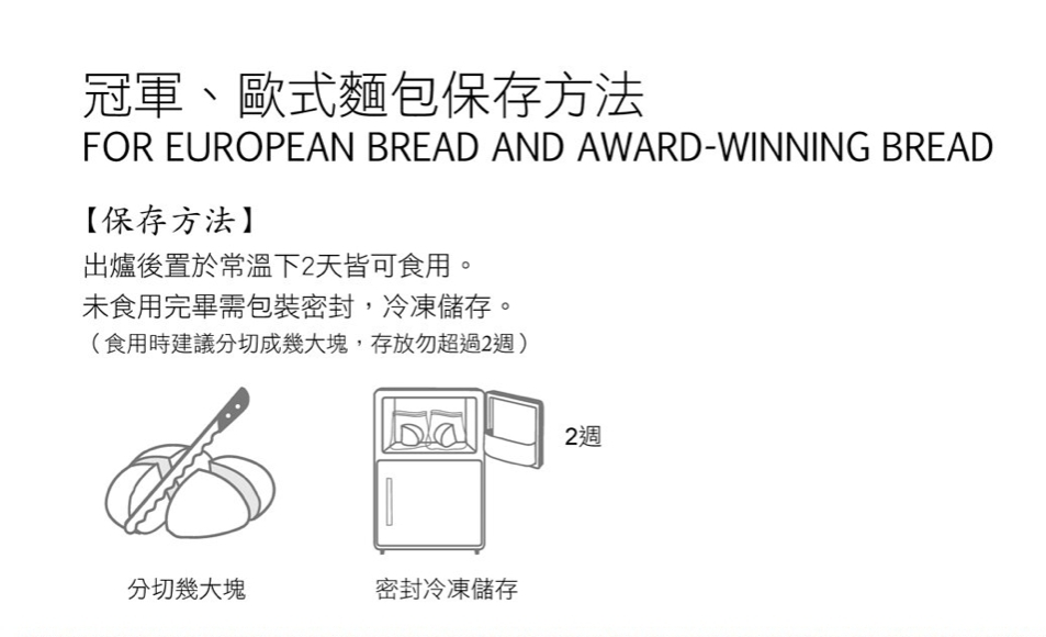 - 台灣冠軍烘焙師傅吳寶春強烈建議:如果麵包無法在1-2天內吃完,最好直接冷凍保存!